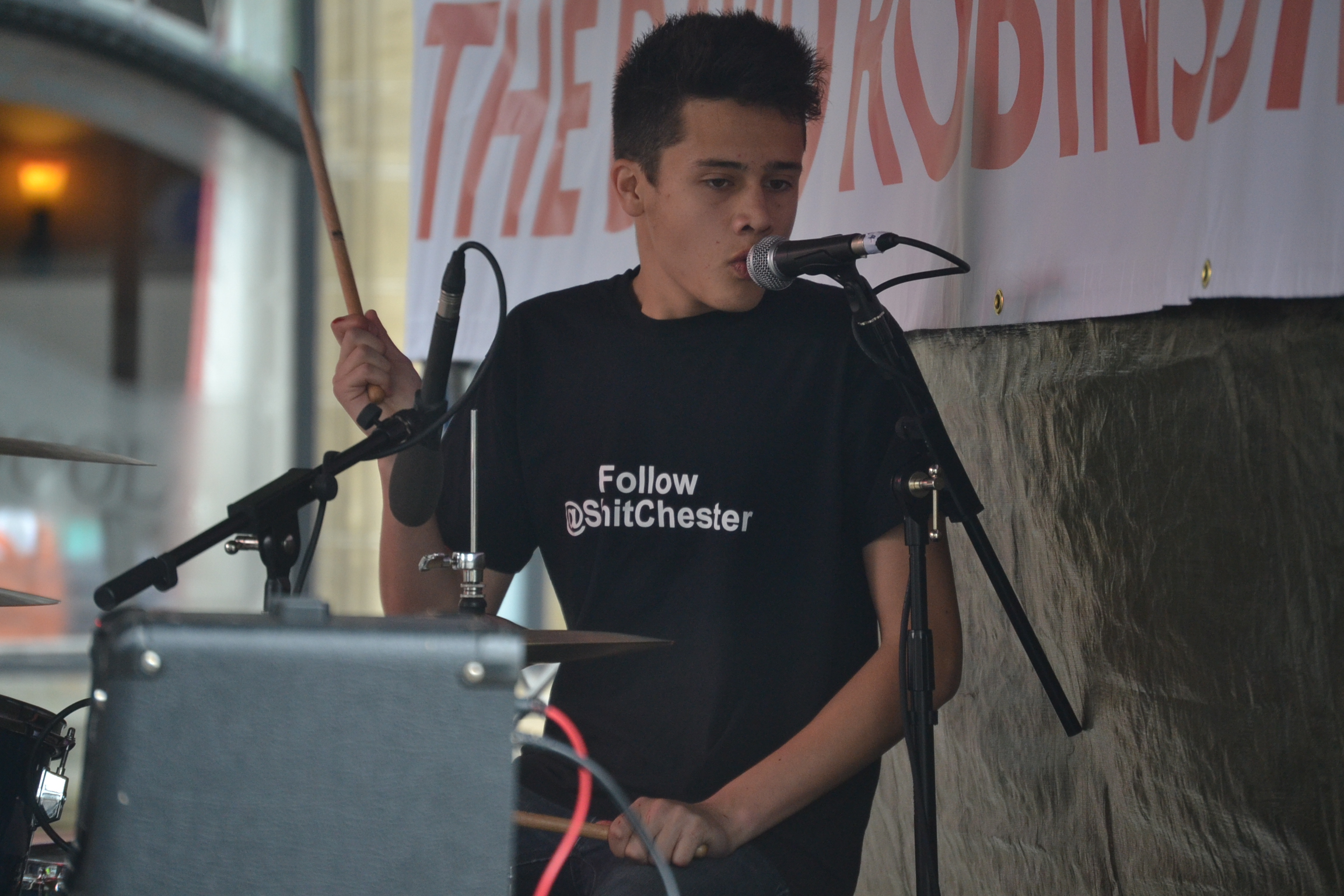Long term friend of the account Cllr Sam Dixon opened the musical stage, dedicated to the late Cllr David Robinson, a nice touch from the organisers. Next to her on stage as she gave the speech was Matty from The Jigsaws, proudly showing off his “follow @ShitChester” T shirt. The drummer Harry was also wearing the team shirt , and this was another surreal moment to me. I passed another 2 people wearing our shirts on the day and there was a full rail on display in Becnicks. The story is well known by now, but nowhere in my wildest dreams did I expect any of this to happen. I’m still flattered by all the support I’ve had and the goodwill from so MANY people. The Jigsaws were an energetic opening act , look forward to seeing them again at some point.