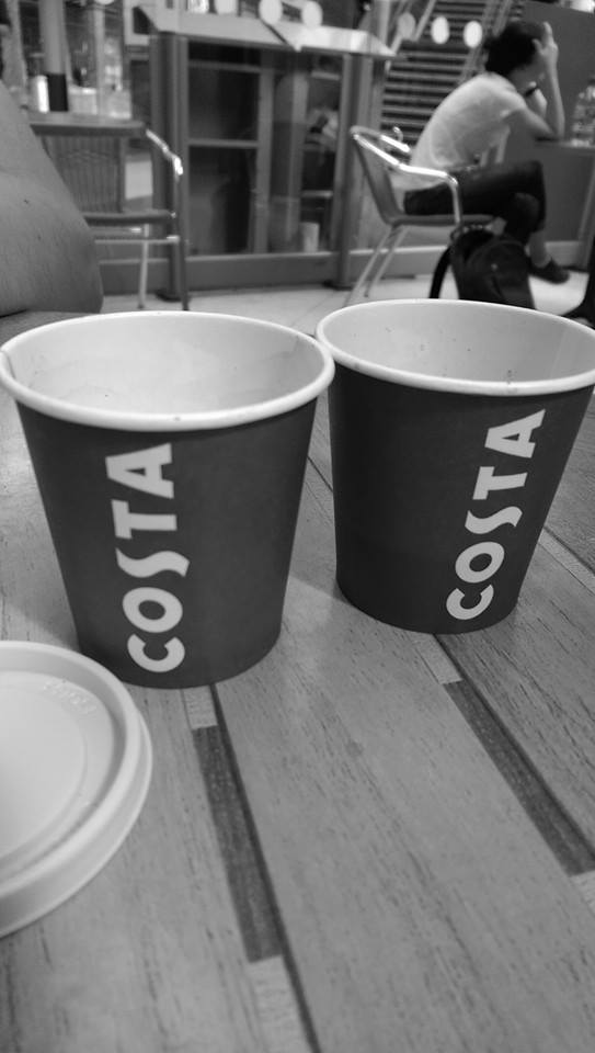This Costa feels a little bleak, with the fenced off seating areas and shuffling shoppers resembling a scene from the walking dead. There is no Italian themed artwork on the walls here, mainly because there are no walls. A poster near to the till proclaims the good efforts of the Costa foundation raising £1 million for charity in 2013. So well done for that. At this point I have a slight headache.