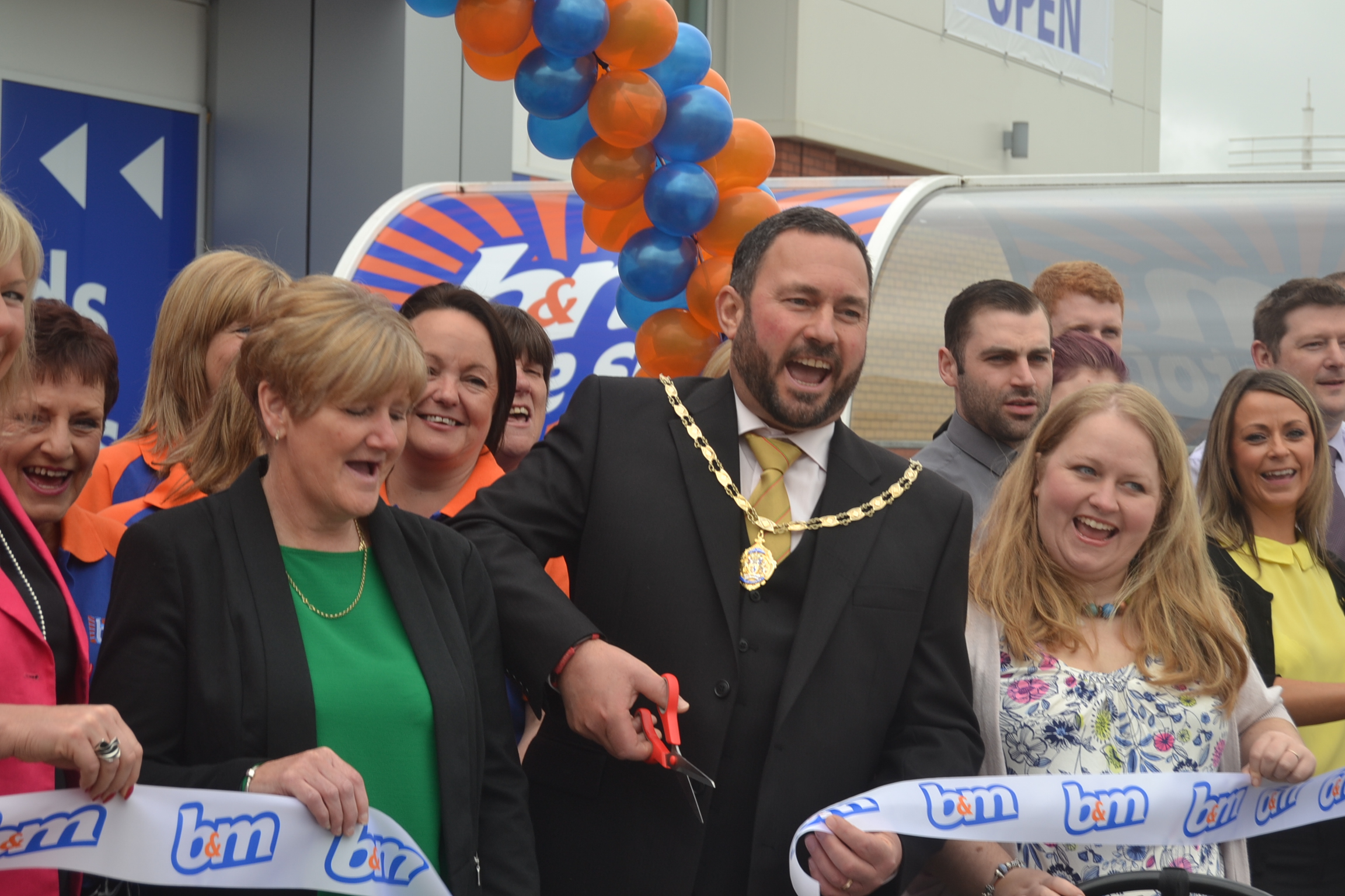 The new B&M on Sealand road opened today, taking on the premises vacated by Tesco home. Tesco closed the store in March as a cost saving measure along with 42 other unprofitable stores. By possession of a “big camera” we soon attracted the attention of the B&M communications manager who was happy to help in the absence of any official press. Opening the store today was local hero Jemma Gregory, co founder of SPACE (http://www.spacecheshire.org/) a charity which“supports children with additional needs to play in a safe and friendly environment”. SPACE is our selected charity for the Lego display in the market hall and an interview with Jemma and co founder Claire Edge featured on an edition of my radio show.