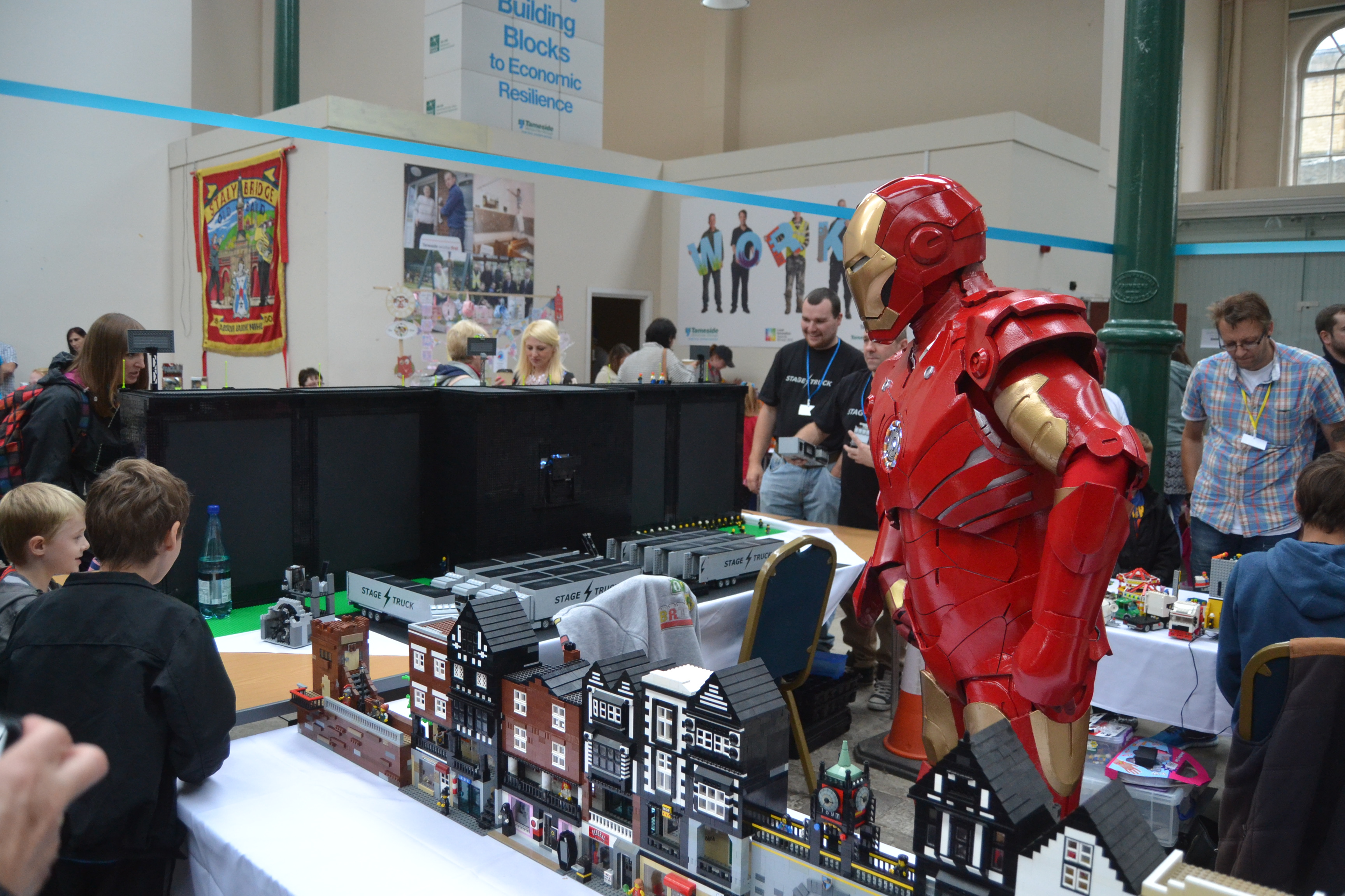 After a quick trip to the market to pick up the key parts of the display we set off on the short trip to Stalybridge. A pre-show tweet of support from Cllr Dixon was very well appreciated as we spread the Cestrian vibe outside of the borough. Opening at 10.30 the show was busy all day with 100s of visitors admiring the model and great builds from other lego artists. The show was in aid of Alzheimers society, Barnabus, a Christian homeless charity and the Royal Manchester childrens hospital. Here’s what we had on display :