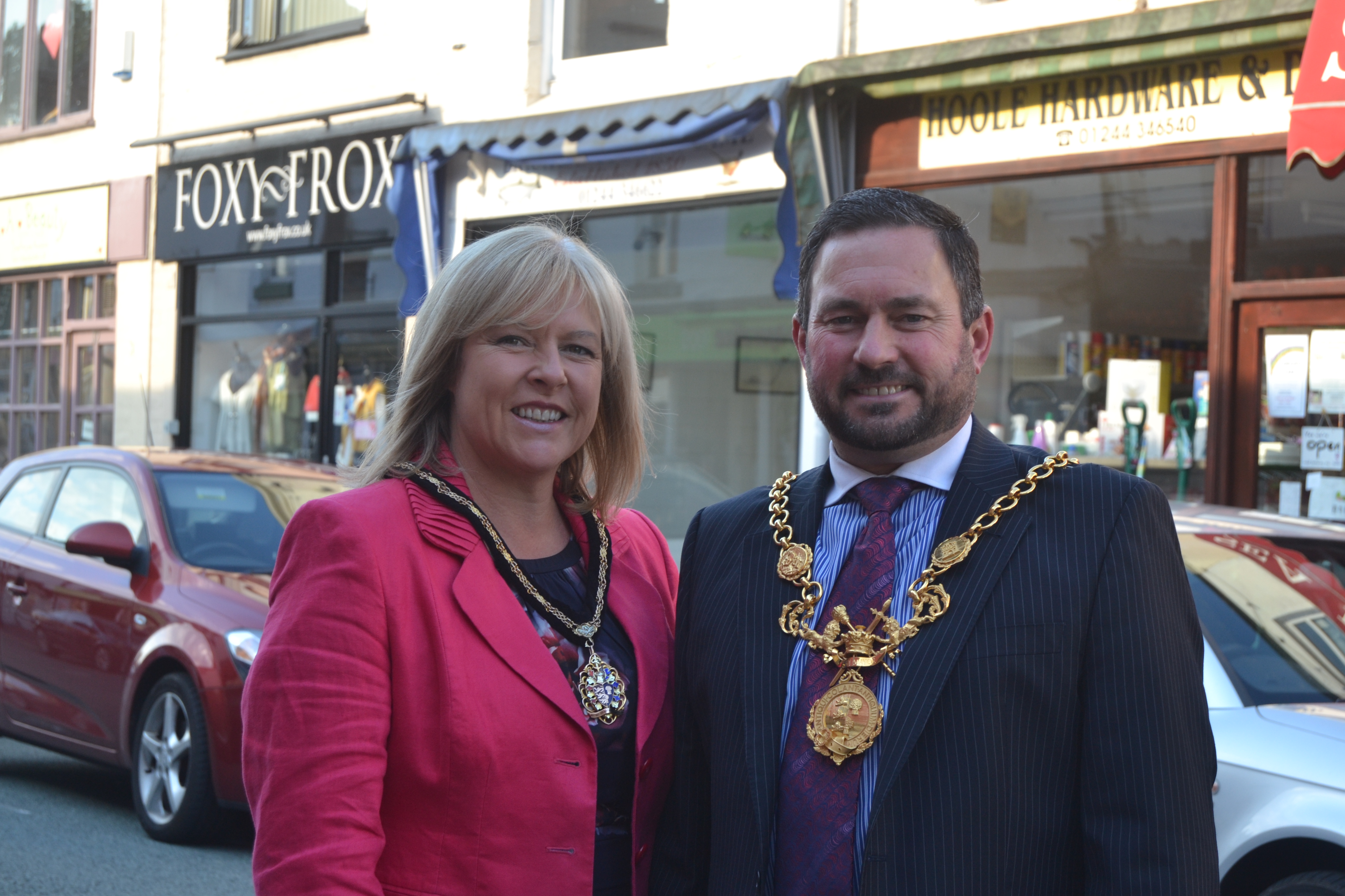 The #Hoole2win campaign (see previous blog https://shitchester.wordpress.com/2015/08/01/championing-hoole-with-ian-puleston-davies/) rolls on with a visit from the latest high-profile supporter. Lord Mayor Hugo Deynem ,and wife Deb strolled the high street chatting to passers-by and business owners.