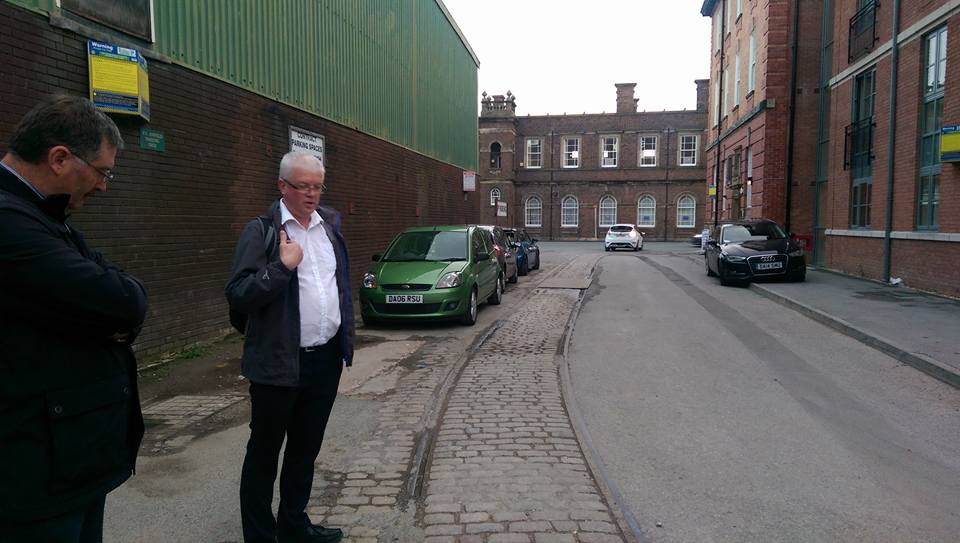 Trams began in Chester in 1879. John took us Car Street, off city road where the original tram depot once stood. Now a housing area, called Tramways, the horse trams began here. Still surviving after over 80 years is a section of the original tram track, fascinating to see and largely unnoticed by passers by.