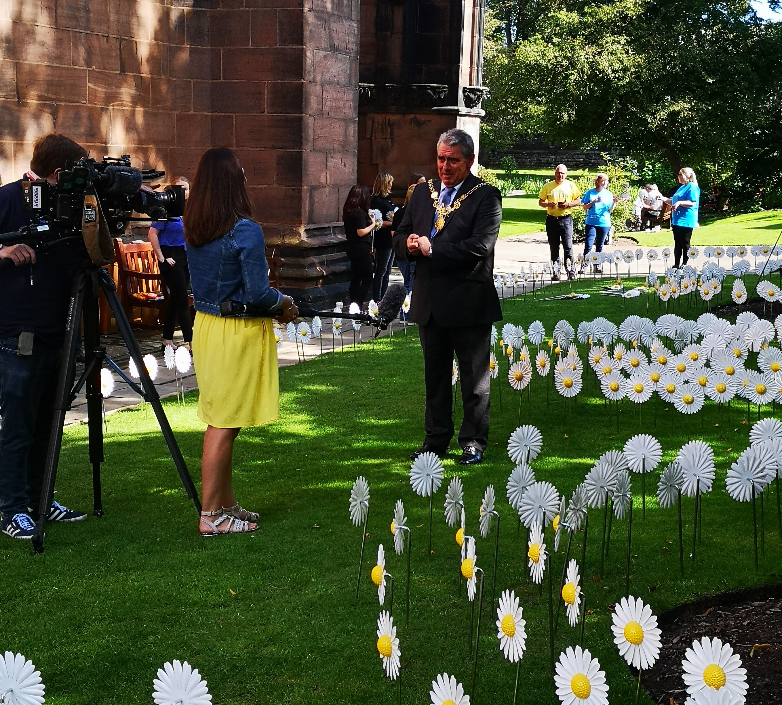 Michael Portillo filmed on top of the Eastgate and Stephen Mullhern filmed “In for a Penny” across the city centre, with security trying in vain to move along onlookers : “any more than 6 people and its illegal!” . In other arts news the much missed Tip Top Productions staged an open air sell out event at Theatre Clwyd.