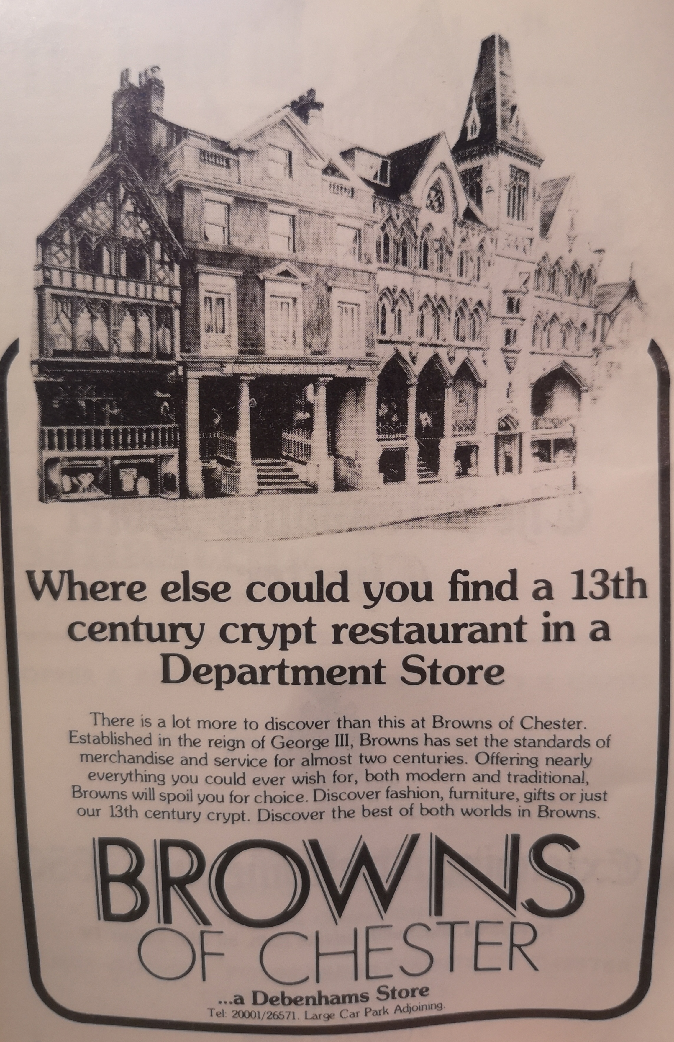 As we all know Browns of Chester was founded in 1780 (during the reign of George III) by Susannah Brown and has traded from the premises on Eastgate street since 1791. With the collapse of Debenhams, who acquired the store in 1976, 230 years of Cestrian history are coming to an unwelcome end. I visited on the penultimate day of trading for the store once known as “The Harrods of the North”.