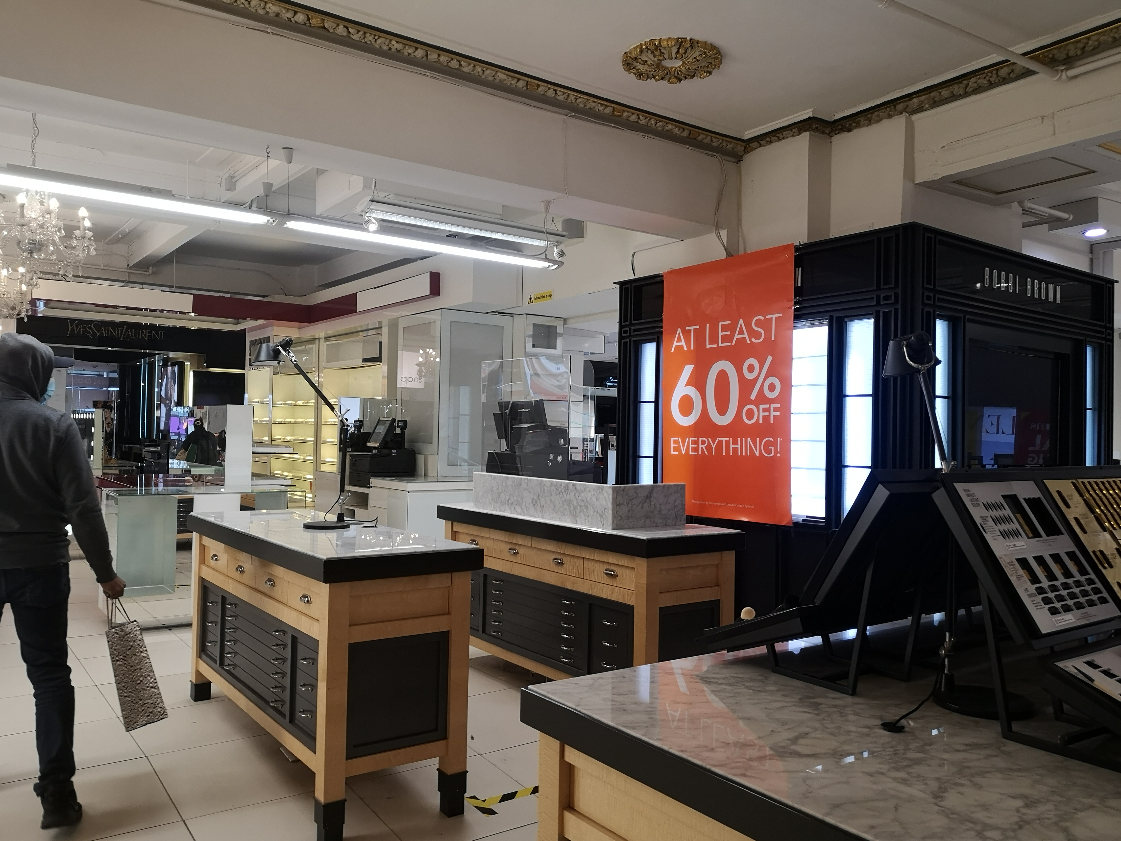 “It said all shoes ten pounds?” argues a customer at the till as I stand in the queue with some final bargains. “No, I worked it out in my head, it should be cheaper than that” says another. The staff smile on behind their masks, probably counting to ten in their heads at shoppers who probably haven’t set foot in the store for years. Saying that life hasn’t been great for most of us in the last year is probably an understatement, but now as we emerge from the pandemic and move towards a supposedly brighter future, 12,000 retail workers across the UK are losing their jobs. The staff take it all in their stride despite the heart-breaking emptiness of the building, with the upper floor now totally empty and fenced off, apart for access to the toilets. For the sake of history I look at the strange sad sights. On visits in recent years I had noticed how the store rarely felt busy except at Christmas, the cafe which was my main reason for visiting, sadly didn’t reopen after the first lockdown. I miss the breakfasts up there. Plus the toilets of course, closure now meaning that the embattled Grosvenor shopping centre no longer has any facilities for shoppers.