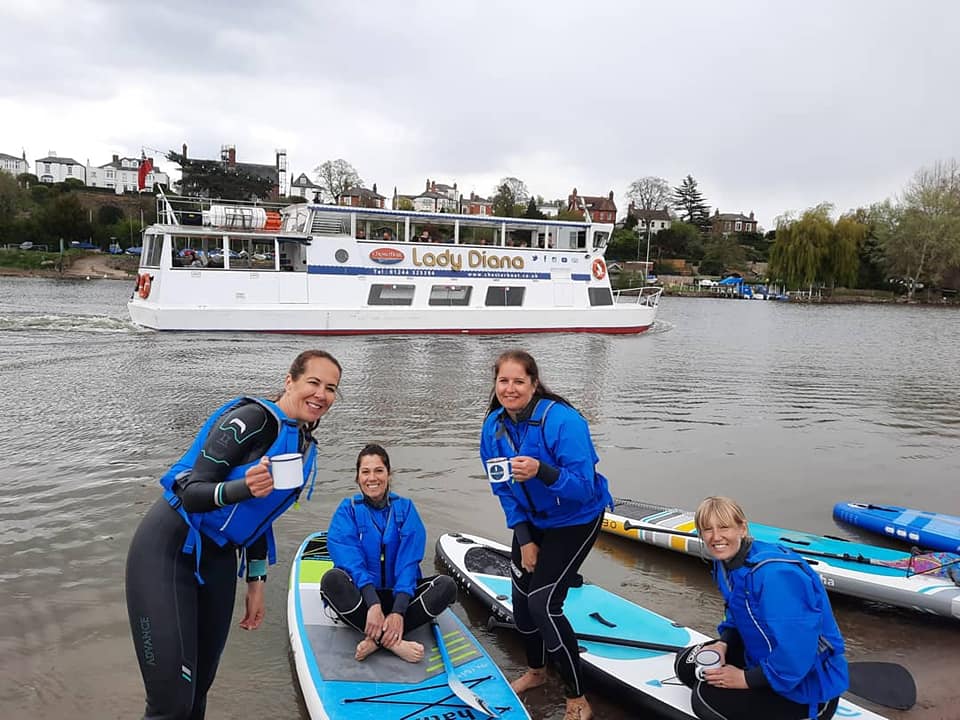 Paula says that paddle boarding is for everyone: ” A lot of it is a fear factor, people are frightened of falling in the water if they stand up, The boards are big and stable and it’s inclusive for all regardless of ability , whether you’re standing or sitting or kneeling , its about getting out there and doing it. The River Dee is one of the cleanest rivers in Europe, it has drinking water status and provides water to 3 million homes. It gets tested daily at every bridge from the source to the Estuary and any pollution can be pinpointed. The Surfers against sewage website has real time water quality alerts so people shouldn’t be frightened of going in the Dee because it is super clean.