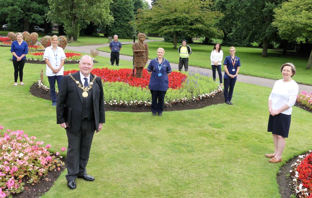 This year’s floral display in Grsovenor Park, recently completed by the Council’s Street Care Team is themed around “Covid recovery” and pays tribute to NHS staff and all key workers.