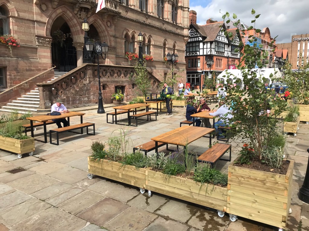 The parklet makes an ideal stopping off point for anyone visiting Chester Market to take advantage of the great range of independent traders.