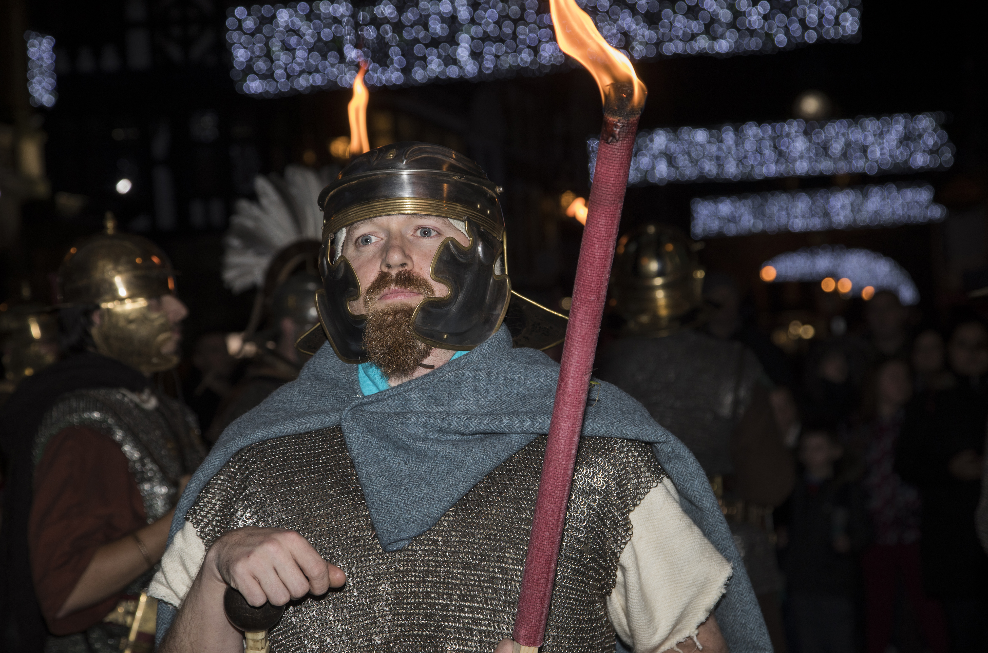 - The Christmas parade season which made a welcome return this year following the cancellation in 2020 concludes on Thursday with the Saturnalia parade. The parade leaves the Grosvenor Museum at 6.30pm after arriving in Eastgate Street where the Emperor Domitian will address his subjects. “Let none of you be mistaken, the Romans are still here, at certain times of the year you will see us marching once more through our fortress. Remember who and what I am. I am a sword that sings in the dark. I am the sound of a legion marching to war. I am the axe that thuds into your scull. I am accuser, judge and executioner. I am Imperator. I am a living God. I am Caesar. I am Rome” The Roman parade will meet with the Winter Watch parade at Town Hall Square for a final march through the city. Saturnalia was the feast at which the Romans commemorated the dedication of the temple of the god Saturn. Saturnalia was originally celebrated in Ancient Rome for only a day on December 17 but it was so popular it extended to a week, from the 17 to 23 December, despite Augustus’ efforts to reduce it to three days, and Caligula’s, to five. It became one of the most popular Roman festivals. It was marked by tomfoolery and reversal of roles, with slaves and masters switching places. Clothing was relaxed and included the peaked woollen cap that symbolised the freed slave. A member of the familia (family plus slaves) was appointed Saturnalicius princeps, roughly, Lord of Misrule.