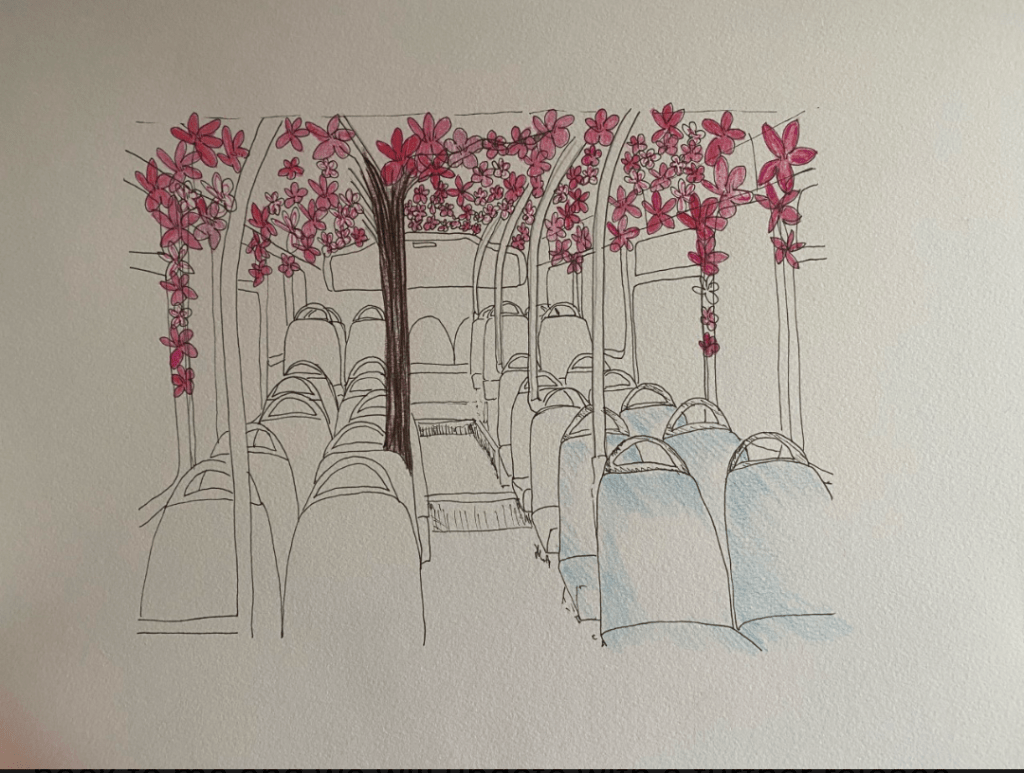Park and Ride into the city centre and zoo on this amazing Hanami Cherry Blossom Bus, where blossoms co-created with Cheshire communities, are made from recycled shirt yarn, or British super chunky yarn. Celebrating the arrival of Spring with the hope that the year ahead will allow gathering and connection, each Cherry Blossom has been dedicated to the 1,290 registered carers and the many more unregistered carers in Cheshire. Led by Emma Thackham, One Life Artists merge Curatorial Research, Contemporary and Community Art for Social Action in Cheshire with creative empowerment and wellbeing at the heart of the practice. This piece is co-created with Andrea Janowski and the Carer’s Art Group.