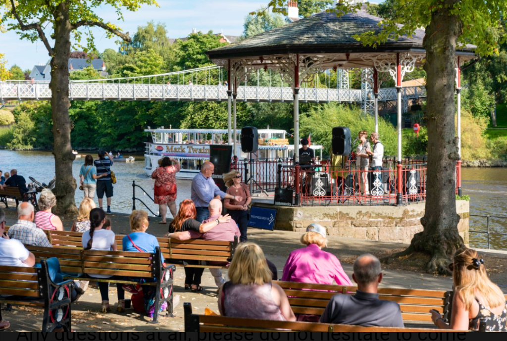 Murmuration reflects the famed murmuration of the starlings, captured in the perfect spot on the banks of the River Dee. Near the iconic Victorian bandstand, birds will float amongst the trees so that spectators can sit on a bench and look up to the bird’s mesmerising performances. Artist Nikki Charlesworth is a Theatre Designer and Maker residing in the East Midlands. Through her own company, Nikki Charlesworth Productions, Nikki works at the forefront of disability-led theatre making and has created outdoor theatre work that has toured the UK.