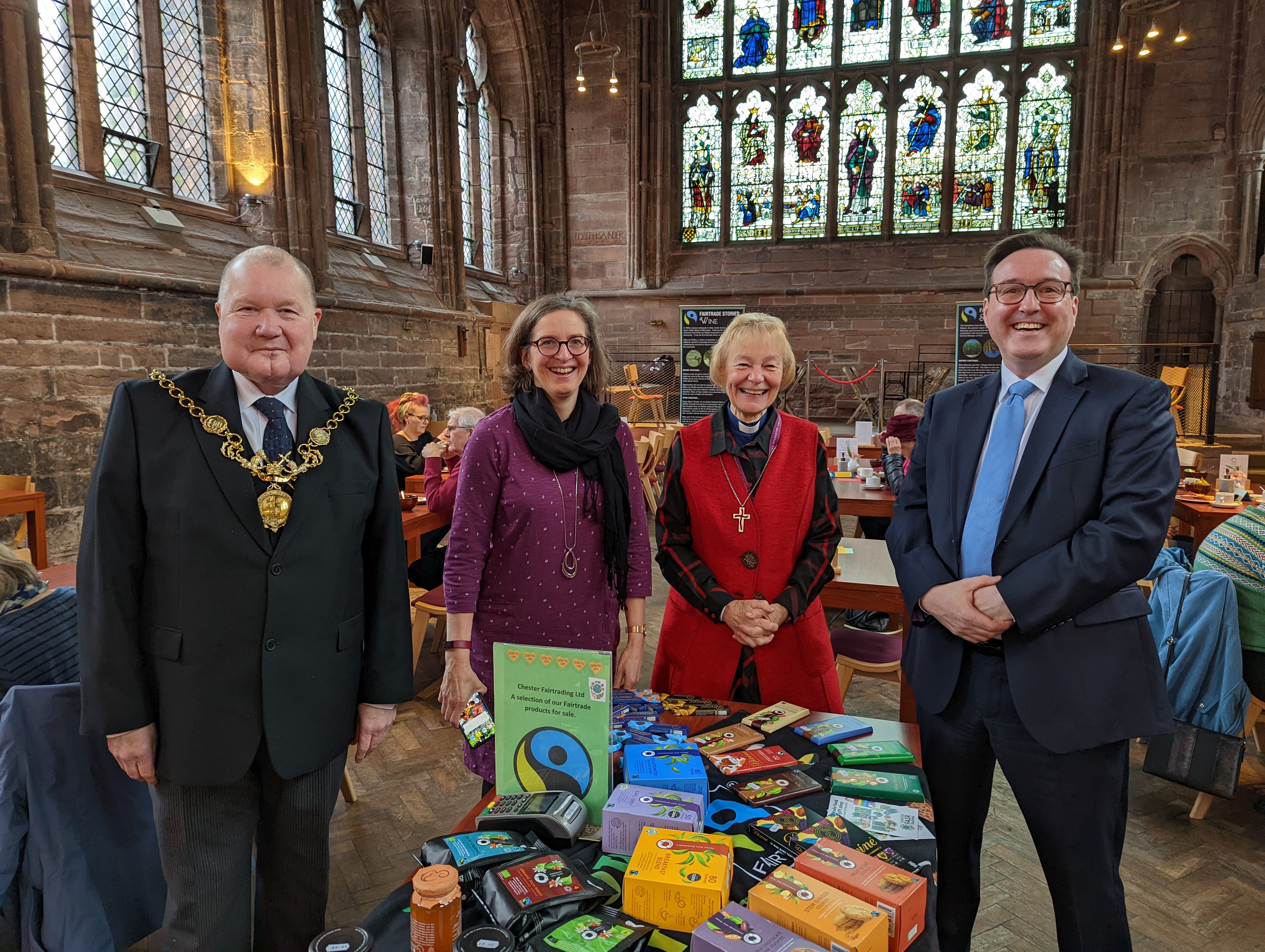 Chester Fairtrade celebrated 20 years of activity in the city with a series of events last week. The borough’s Fairtrade Steering Group, which includes campaigners and supporters from Neston, Ellesmere Port and Chester, first secured Fairtrade status for Chester city in 2002 and for the borough in 2011. The achievement, spearheaded by Cheshire Development Education Centre, and supported by the Council and many individuals, community groups, churches, schools, and businesses, has seen the promotion of Fairtrade across the area over the last 20 years. At a celebratory breakfast hosted at Chester Cathedral, long serving volunteer Heather Swainston said to guests: