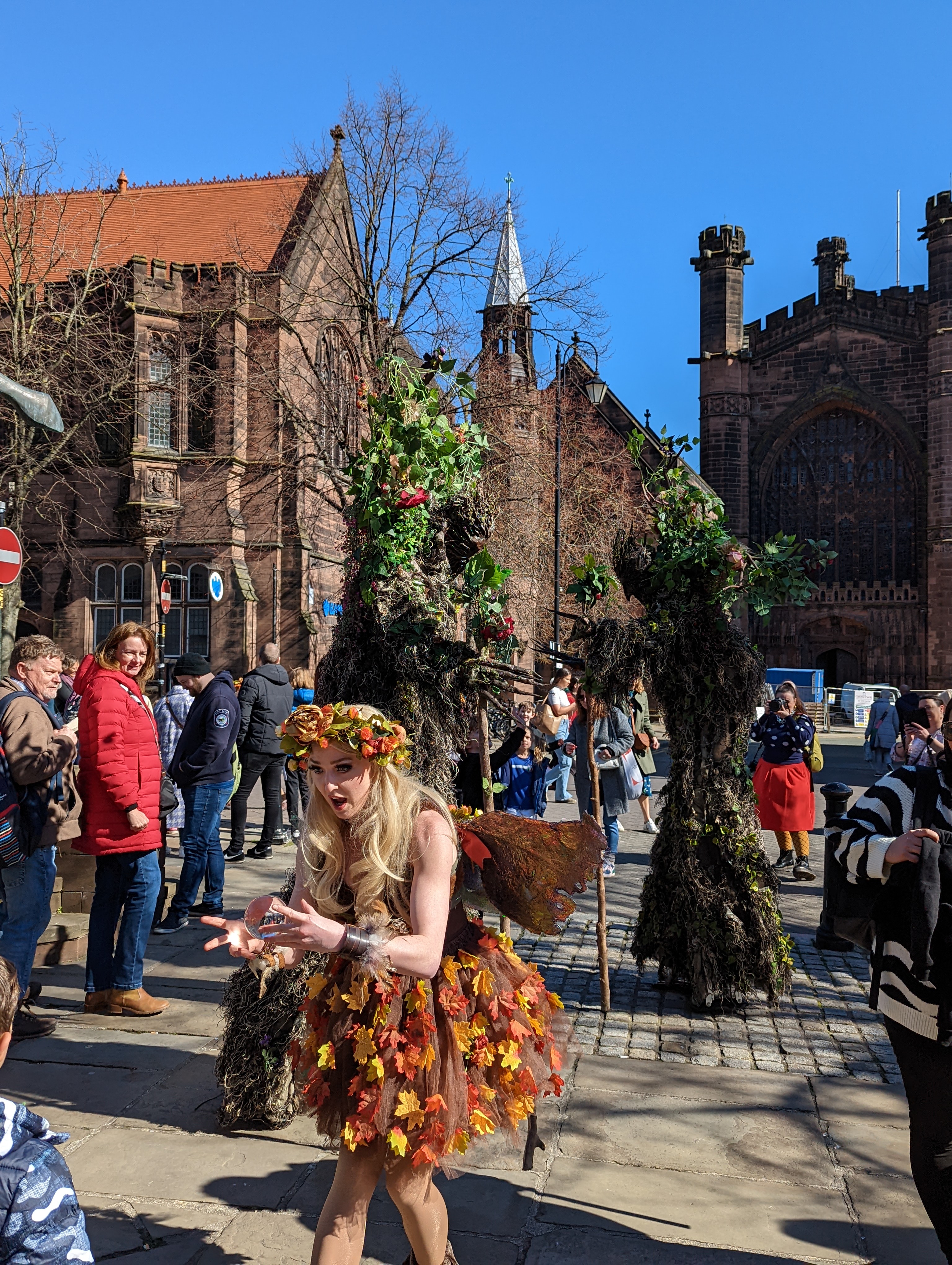 For todays line up see : https://www.visitcheshire.com/whats-on/chester-designed-by-nature-enchanted-forest-festival-weekend-p291991 . There will be further activities on the 25th/26th March with The Birdcage Stage Spring celebration weekend, this time promising street performers operating from a giant golden birdcage structure, including acrobatic cats and dogs, and a stilt walking butterfly-and-flower duo.