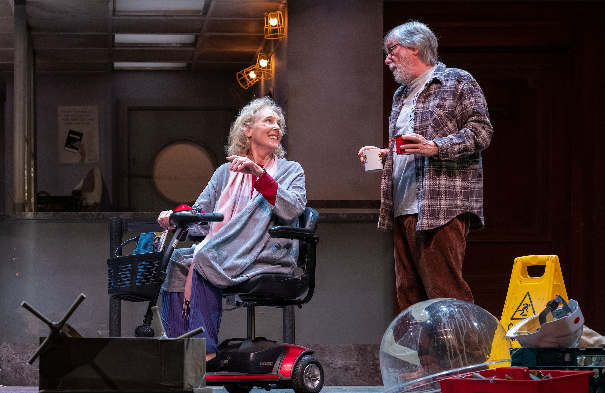 Father and son are renovating a closed down bank building and they are soon distracted from their work by the sprightly scooter riding Alice, the wistful Ted, as well as a group of children from a neighbouring school, (played by members of the Storyhouse youth theatre) and their teacher, Katy. With pre publicity focused on the senior comic character actors, Alyce Liburd stands out as the energetic teacher.