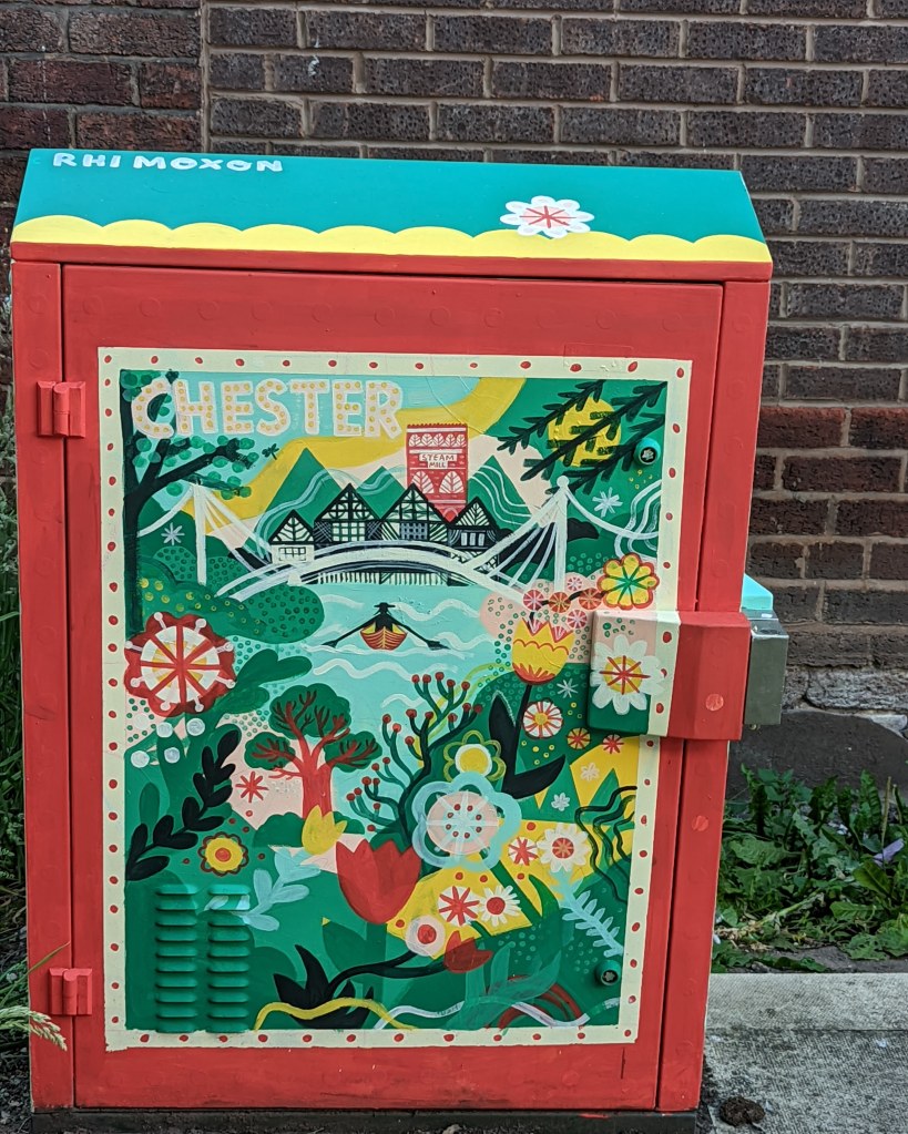 As art fever continues to spread in Chester with a spring of art installations and events plus the forthcoming Chester Art Beat, a further eight new BT cabinets have been transformed into colourful murals within the city centre. Chester BID had previously commissioned eight Cheshire artists to paint the murals with the theme of ‘Chester Designed By Nature’ and due to the popularity of the scheme, have extended this to sixteen in total.