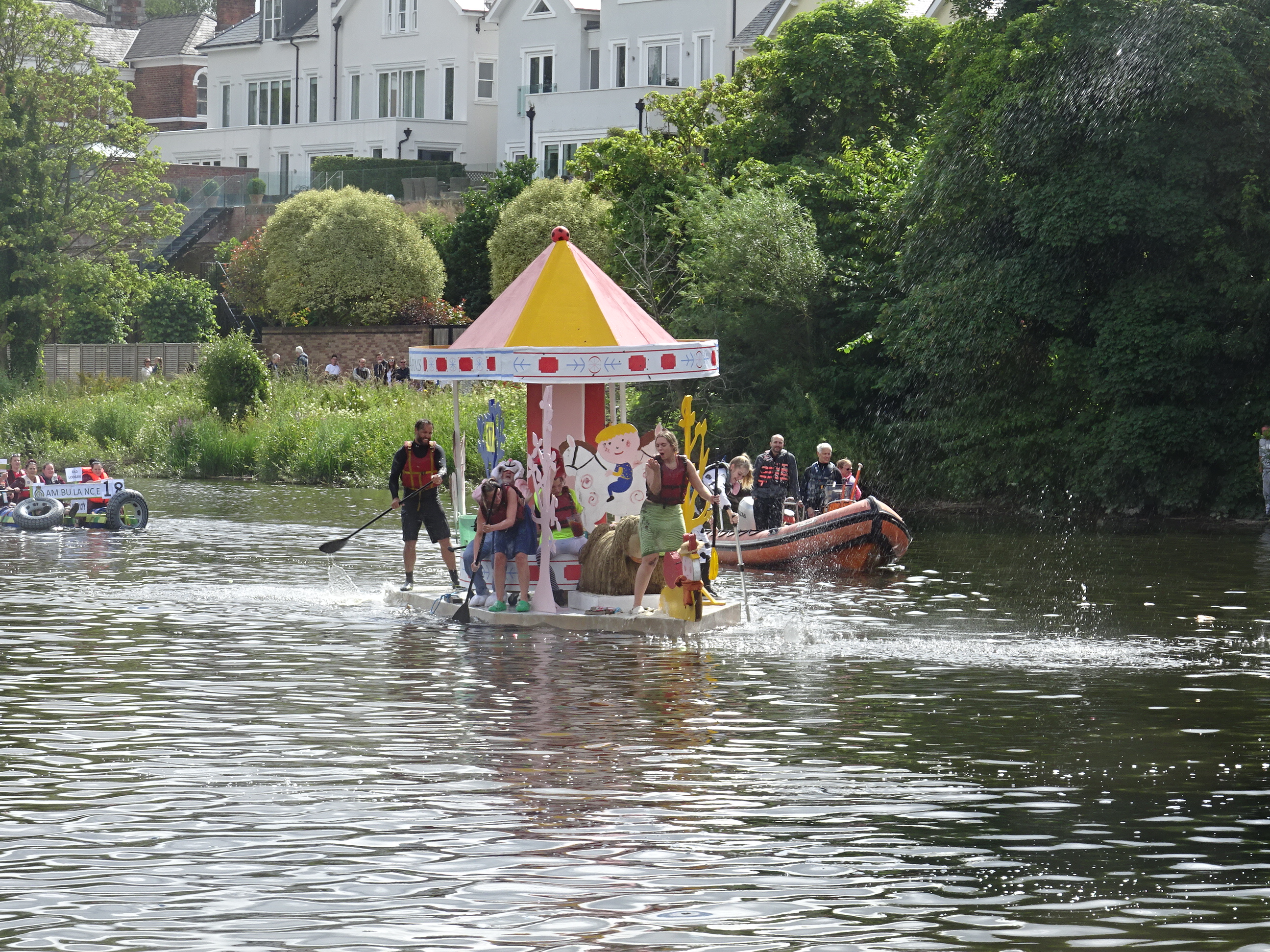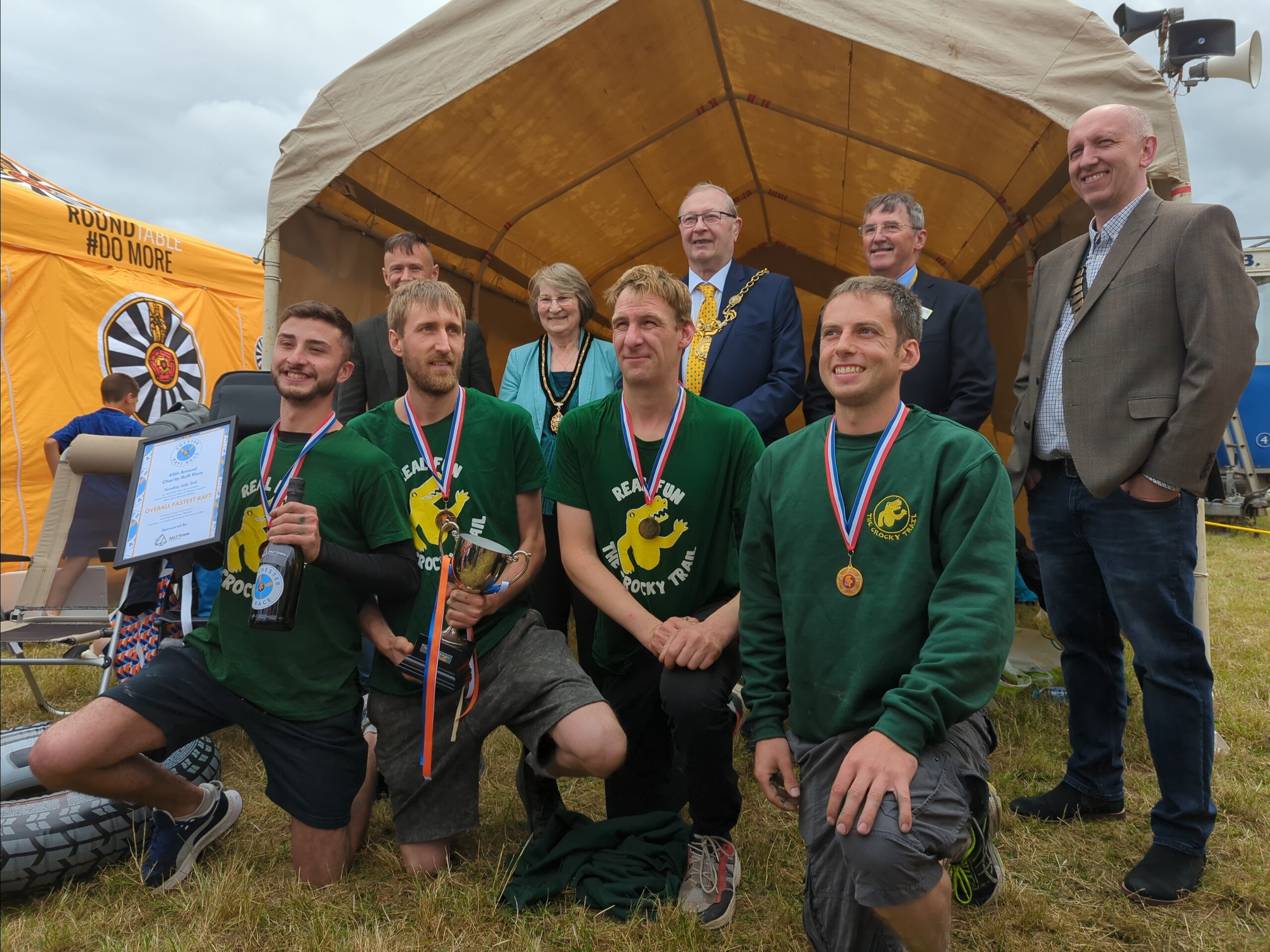 Prize giving took place on the Meadows with Owen Thomas, chair of the Round Table and Lord Major Leather. Best themed raft / fastest hostelry award went to Harker’s Arms Magic Roundabout themed raft.