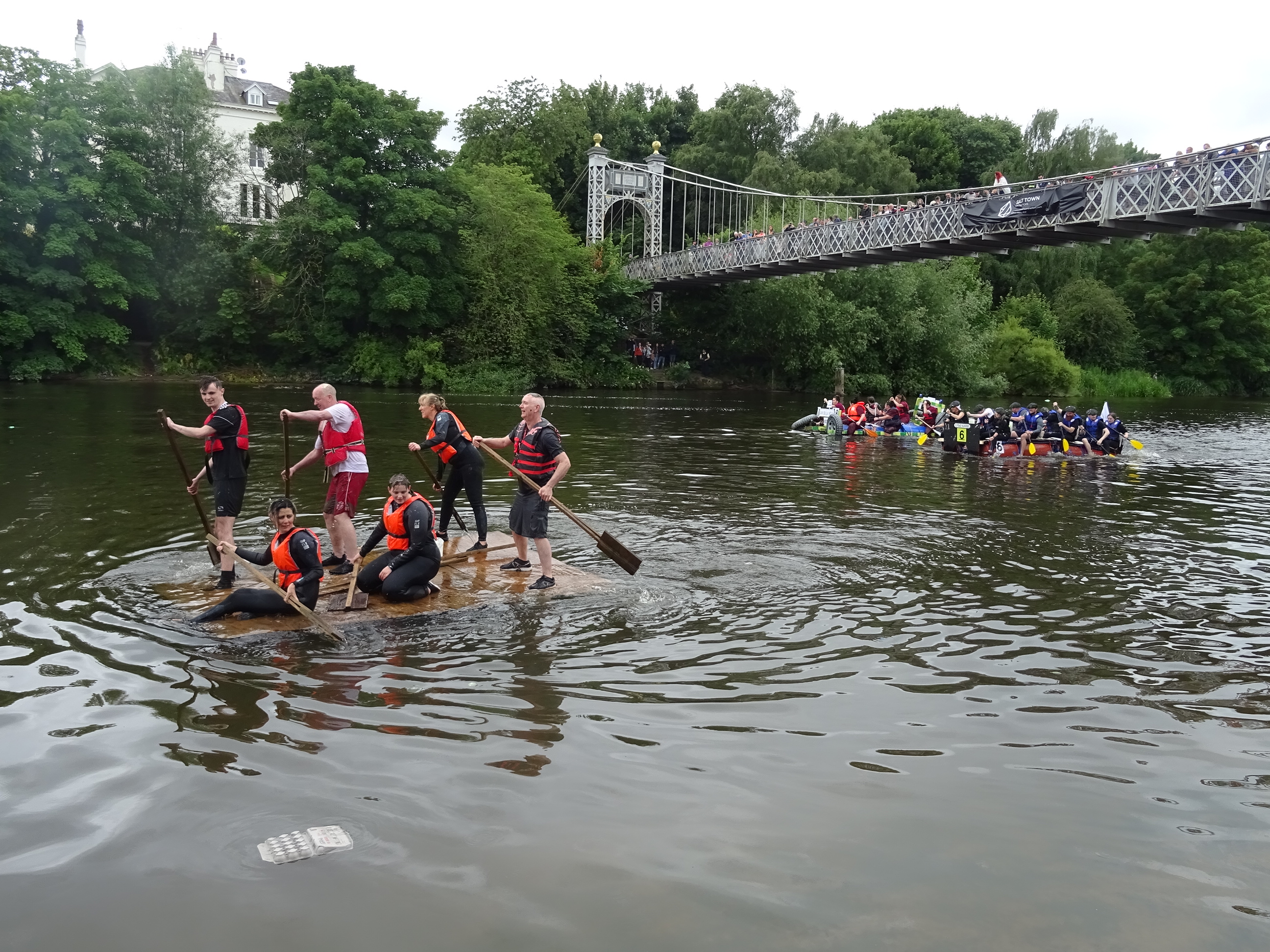 The 45th annual Chester raft race took place on Sunday continuing the tradition that began in 1975. The race was the first since 2019 after the cancelation of the 2020 and 2021 races due to the Covid pandemic. Sponsored by Salt Town contractors, the volunteers from Chester Grosvenor Round Table took over management of this years event from previous long term organisers the Rotary Club. The event charity for 2022 was the Countess of Chester Hospital Blue Sky’s Appeal- fundraising for an outdoor garden balcony at the hospitals’ Intensive Care Unit.