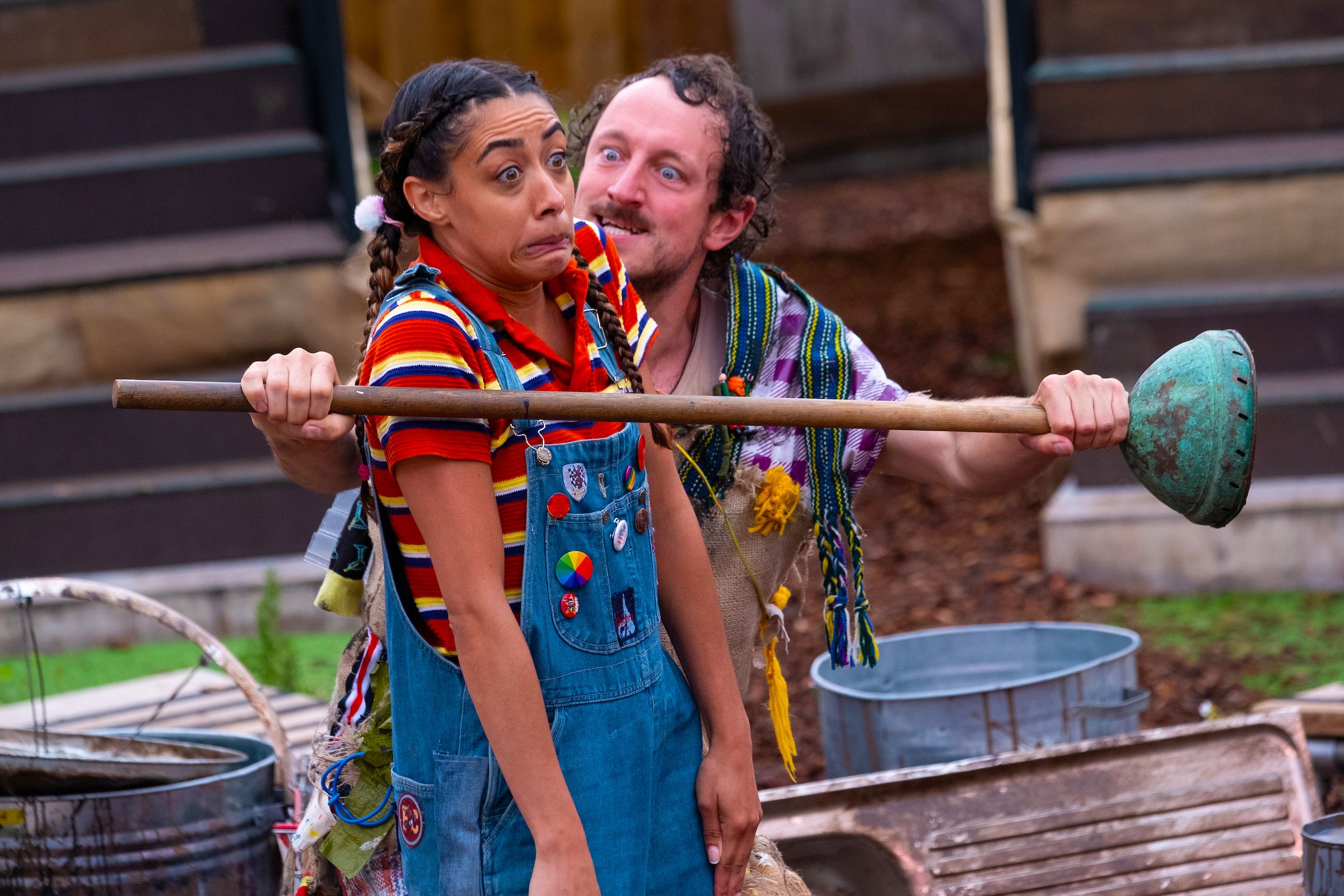 On the greyest of Summer days in Grosvenor Park the sun chose to show itself only once – call it the magic of theatre, divine intervention or blind luck, the timing was superb – Stig (of dump fame) was teaching the characters onstage his ‘caveman’ sign language for ‘sun’ and as he turned his hunched frame and pointed to the sky, streams of light burst through the clouds in a call and response of epic proportions.