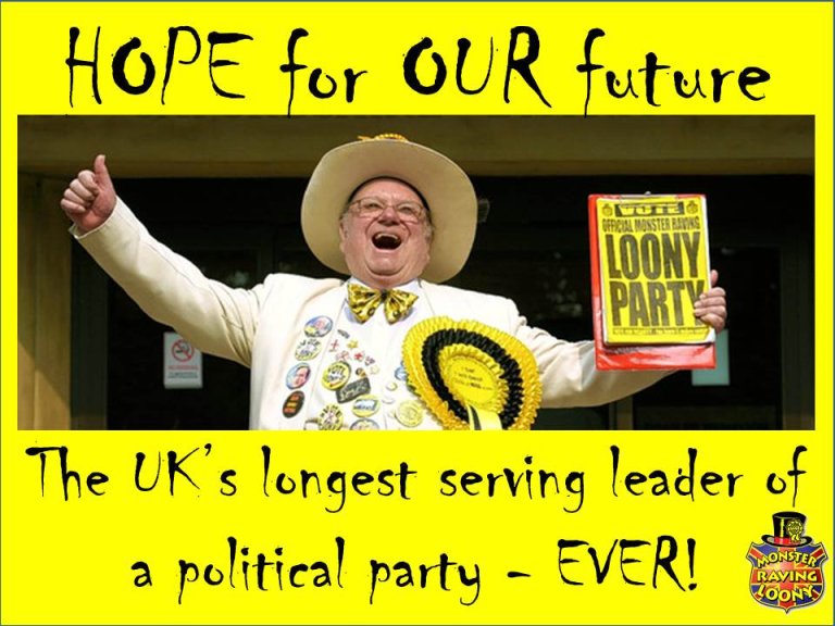 “I became the party leader in 1999 when Lord Sutch died. Whenever a by election comes along, I will stand. We don’t very often come last. People standing for a very good reason, and they get beaten by a Loony!”