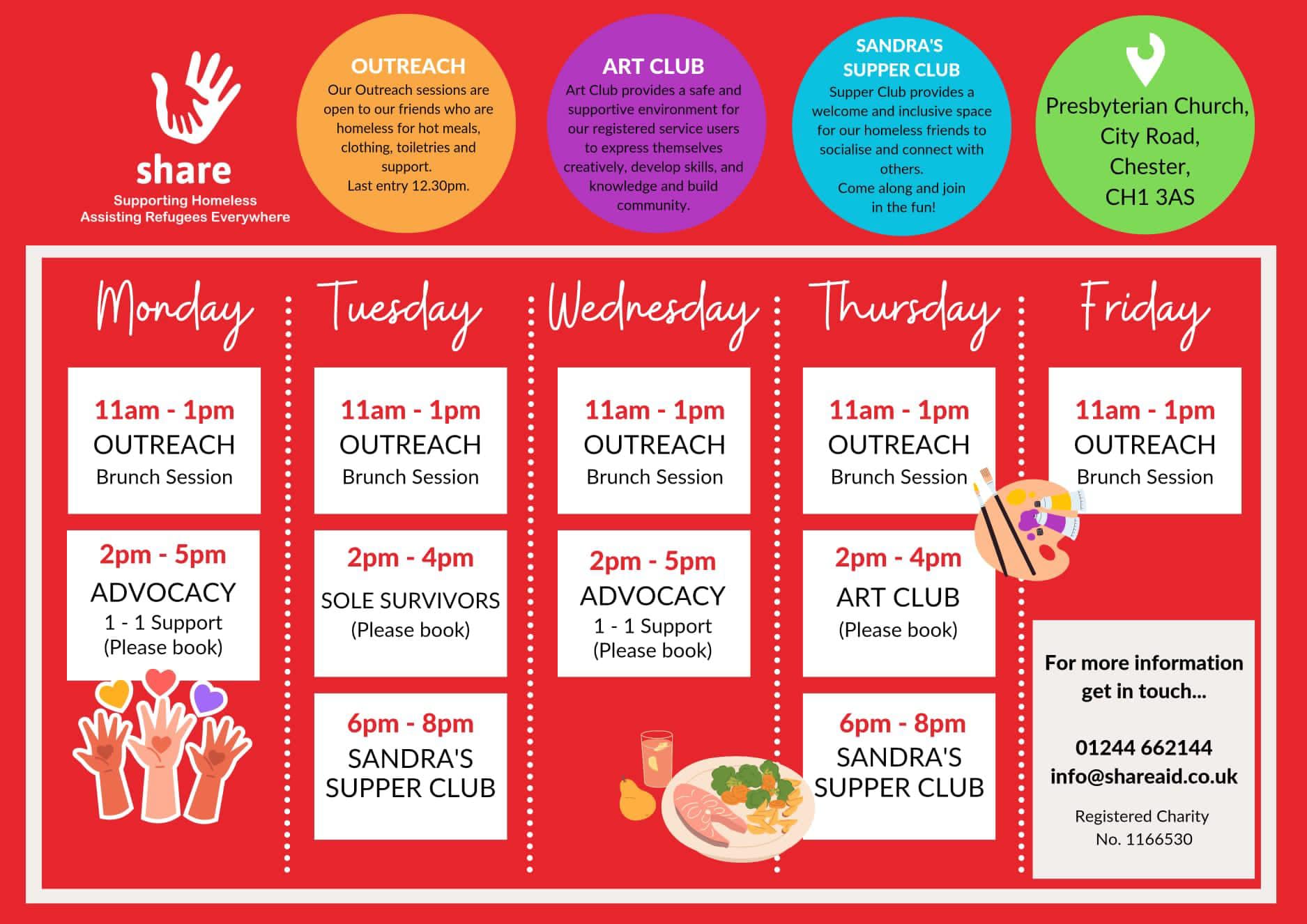 “One of many things we fund locally using money raised at Chester’s new ShareShop next to the Roman Amphitheatre, in the old Dawson’s Music Shop, is a Day Centre for people who are homeless and or refugees, which is located under the Welsh Presbyterian Church on City Rd.” says Adam Dandy, Founder and Trustee of SHARE.