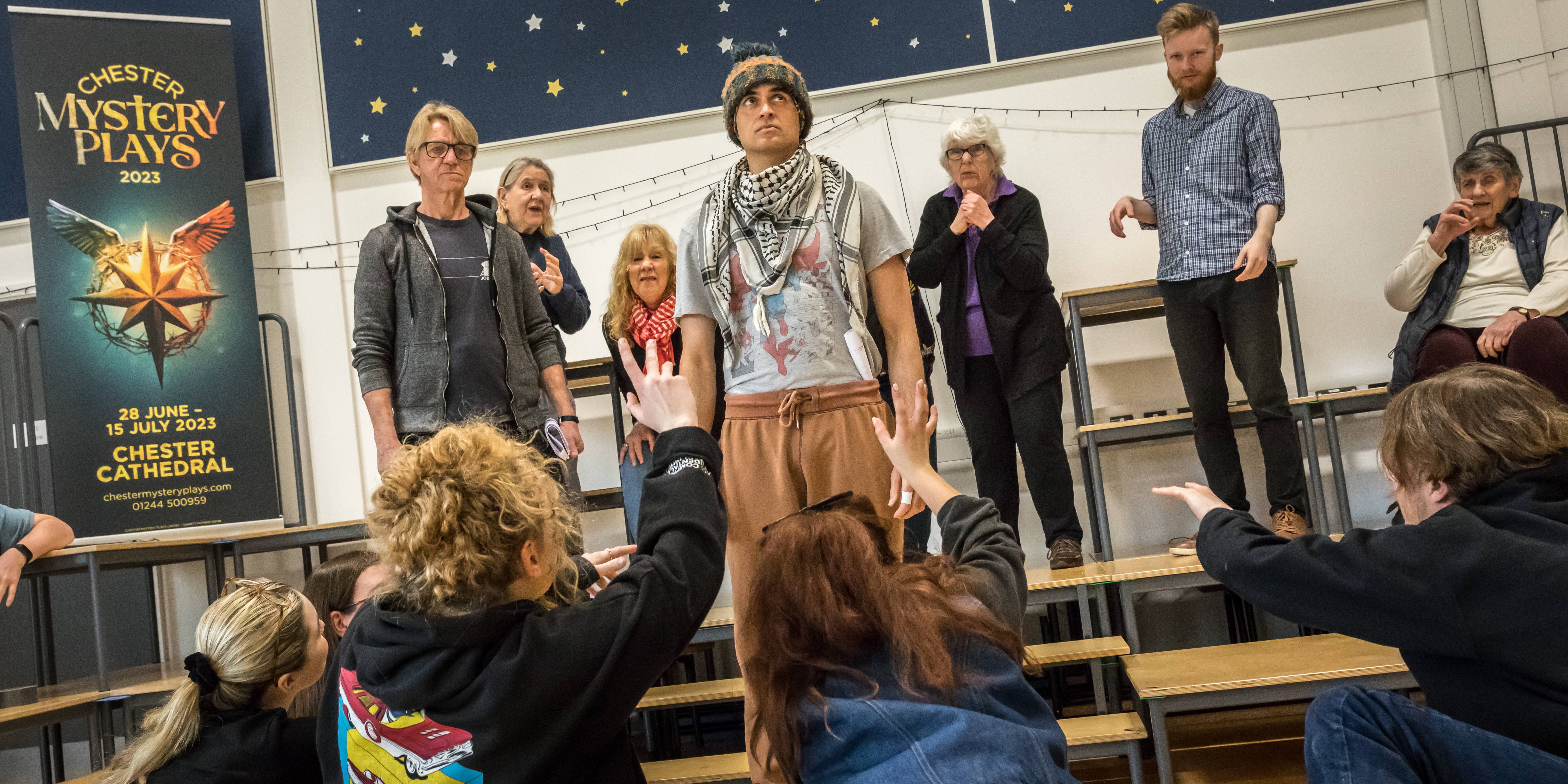 The Chester Mystery Plays is supported by Arts Council England National Lottery Project Grants, Cheshire West and Chester Council, The Ursula Keyes Trust, The Marjory Boddy Char-itable Trust, the Earl of Chester’s Fund, the Granada Foundation and the Megan Gwynne-Jones Charitable Trust. Local businesses and organisations Sykes Cottages, The Wesley Church Cen-tre, Range Cookers, Storyhouse, The King’s School, New Cloisters Cathedral Choir, Chester Racecourse and Hargreaves & Woods also support Chester Mystery Plays.