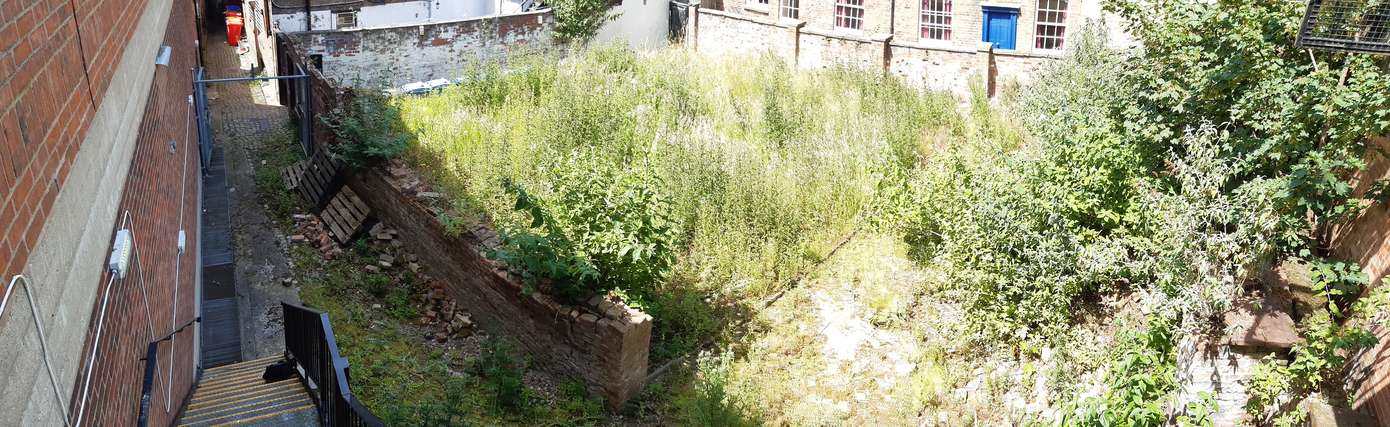 View towards Bridge street down Feathers Lane- the lane was previously used for bin storage.