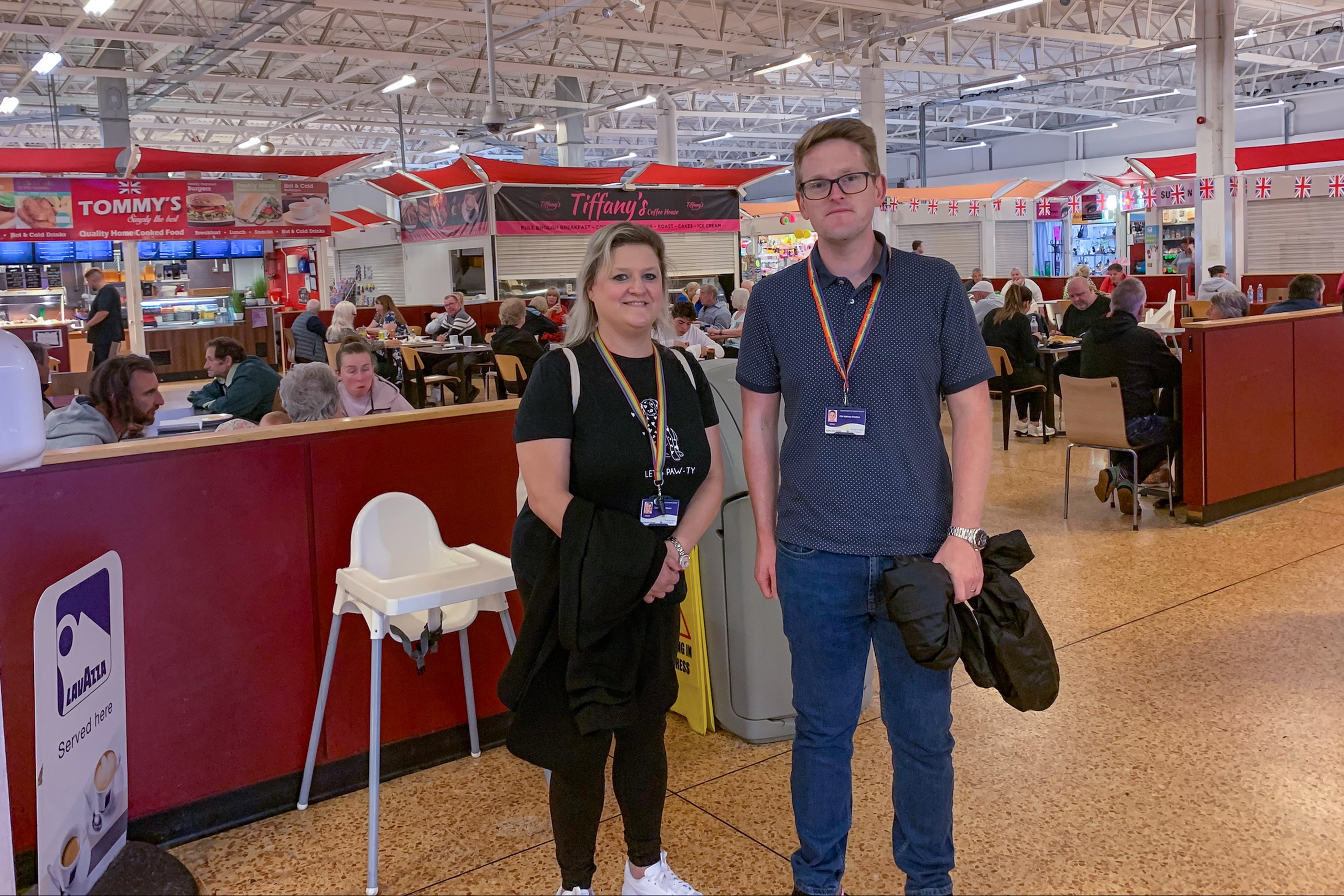 Cllr Karen Shore and Cllr Nathan Pardoe in Ellesmere Port Market