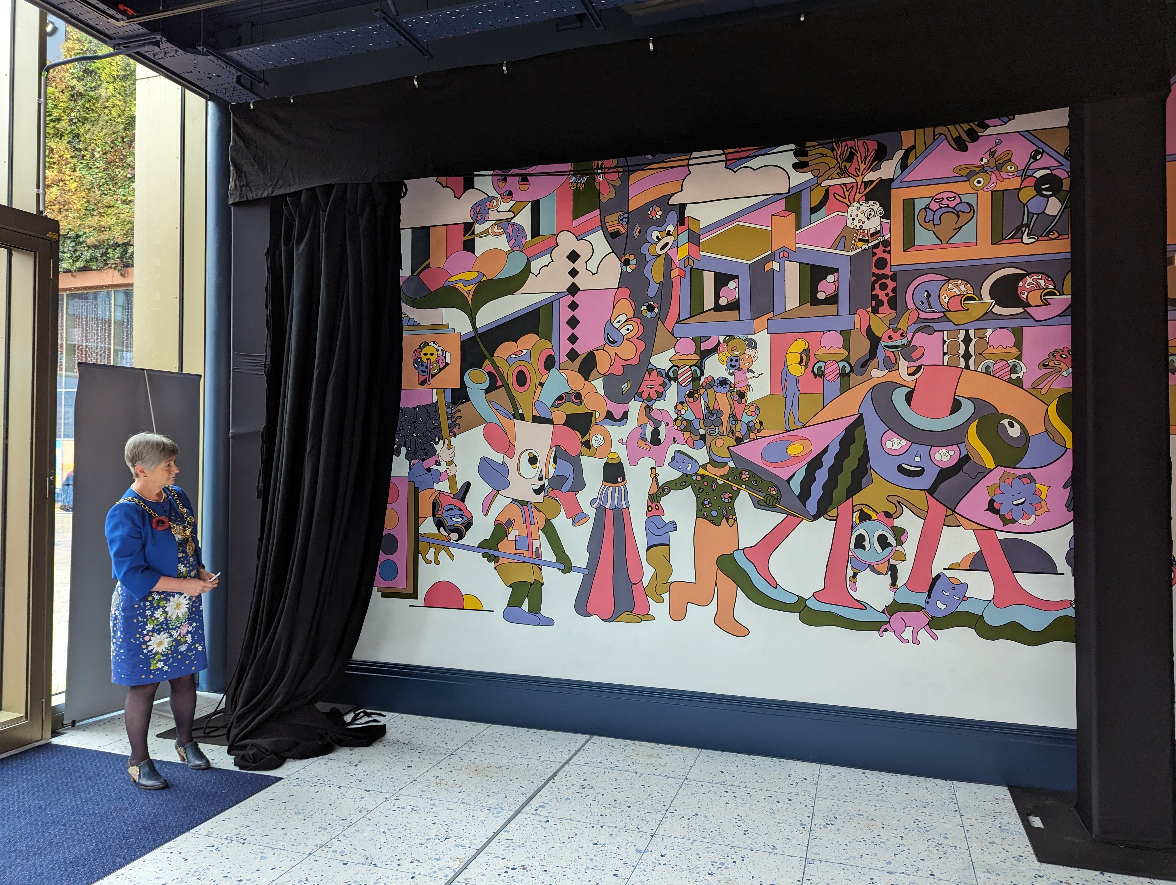 Lord Mayor Sheila Little officially unveiled the mural in foyer created by artist Murugiah. The mural has been specifically designed for Chester and features many local references.