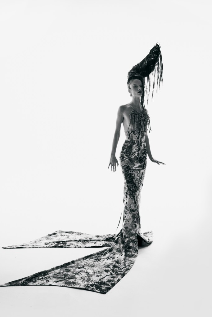 Her pre-collection features a small selection of couture pieces, bringing focus to quality rather than quantity, and draws inspiration from the natural beauty she was surrounded by during her upbringing in the Derbyshire Peaks. Providing a taste of more to come, it is described as: “Alexandra’s love letter to her childhood home, somewhere that the rich colours and dramatic views have influenced more performative and larger-than-life silhouettes.”