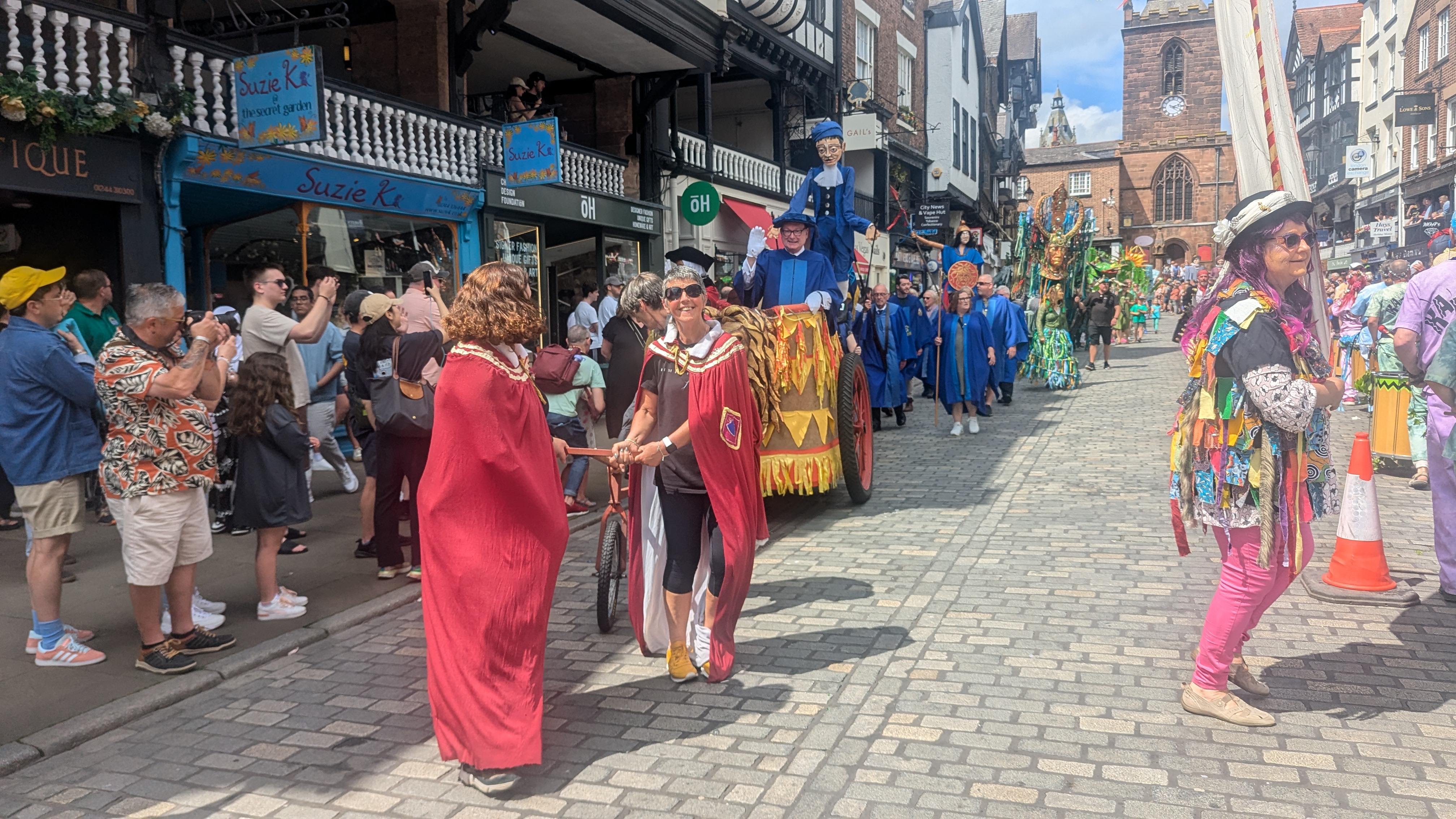 The finale in the Town Hall square saw the final performance of the family of giants. Dave Roberts, who died earlier this year built the originals in the 1990s and was instrumental in the revival and growth of the parades. Taking part in the parade was a fantastic experience and one I’d recommend to anyone wanting a special Chester experience.