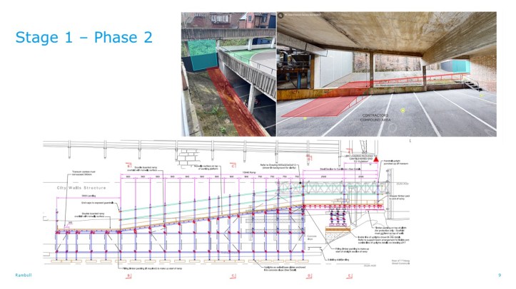 The ramp will support the construction plant required for the works (motorised barrow, mini excavator, compacting roller etc.) and be able to support the delivery of materials.For further information: https://www.cheshirewestandchester.gov.uk/citywalls