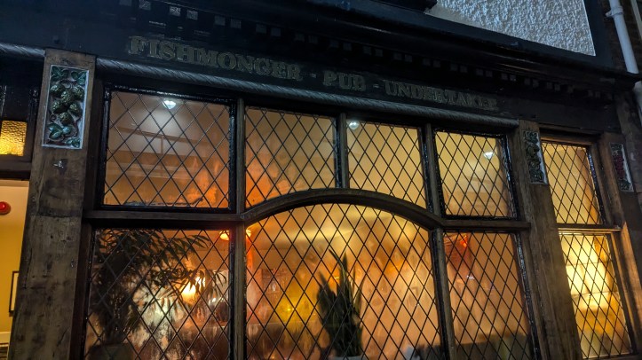 Quirky signage greets visitors to the bar offering a “Fishmonger Pub undertaker” Joe says that historically this part of Chester was known as flesh mongers row. ” It was an area where the ice that was bought into town was kept. We can imagine a reality where someone comes in with a dead body, buys a pint and some fish to take home.” The text was the original signage discovered during renovation. “We love it because we just want as many talking points as possible. We had a row of celebrity owned spirits. We had Kendal Jenner’s Tequila, Danny DeVito’s limoncello and Rod Stewarts whiskey. We are guiding the customer to things that make us happy and excited.”