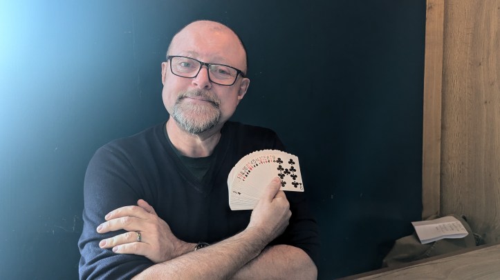 Paul favours card tricks and close up magic saying “I like the intimate close up stuff, getting reactions from people, who may have seen magic on TV bit never seen it face to face. ” He also performs at children’s parties. “A lot of people try and get into the children’s magic scene and they find it very difficult because its hard work but luckily I’m quite mad and I’m on the same wavelength as my audience! I love it. We do stage work, weddings etc. Recently because I am the secretary for the Chester Guild I organised the stage show we did in November ( At St Mary’s Creative Space) It went down really well We used to do the occasional show, but we fell foul of Covid. We were going to do a show in 2020 and Paul Daniel’s son Martin was going to come to Chester and perform for us. We tried again back in 2021 and then we went back into lockdown. We are keen to restart the tradition of doing a show for the people of Chester. ”