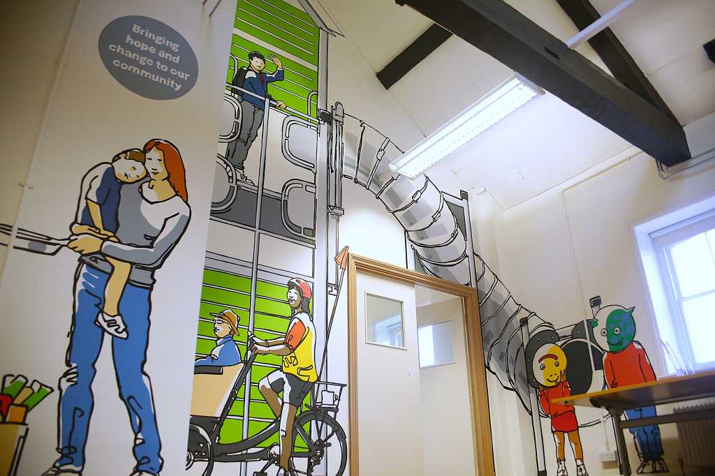 In its’ main meeting room, The Conference Room, the colourful, life-size murals, designed by Chester-based Absolutely Design, reflect the charity’s mission to tackle the causes of poverty, disadvantage and inequality across Chester by illustrating how it supports children, food kitchens, specialist cycles and playgrounds, amongst many other things. In addition, on its’ four-storey stairwell, the timeline of the Grade II-listed Bluecoat is depicted with key moments from1717 when the building started to take the shape it has today. The decorated Conference Room is available to rent at highly competitive prices by visiting http://www.thechesterbluecoatcharity.co.uk