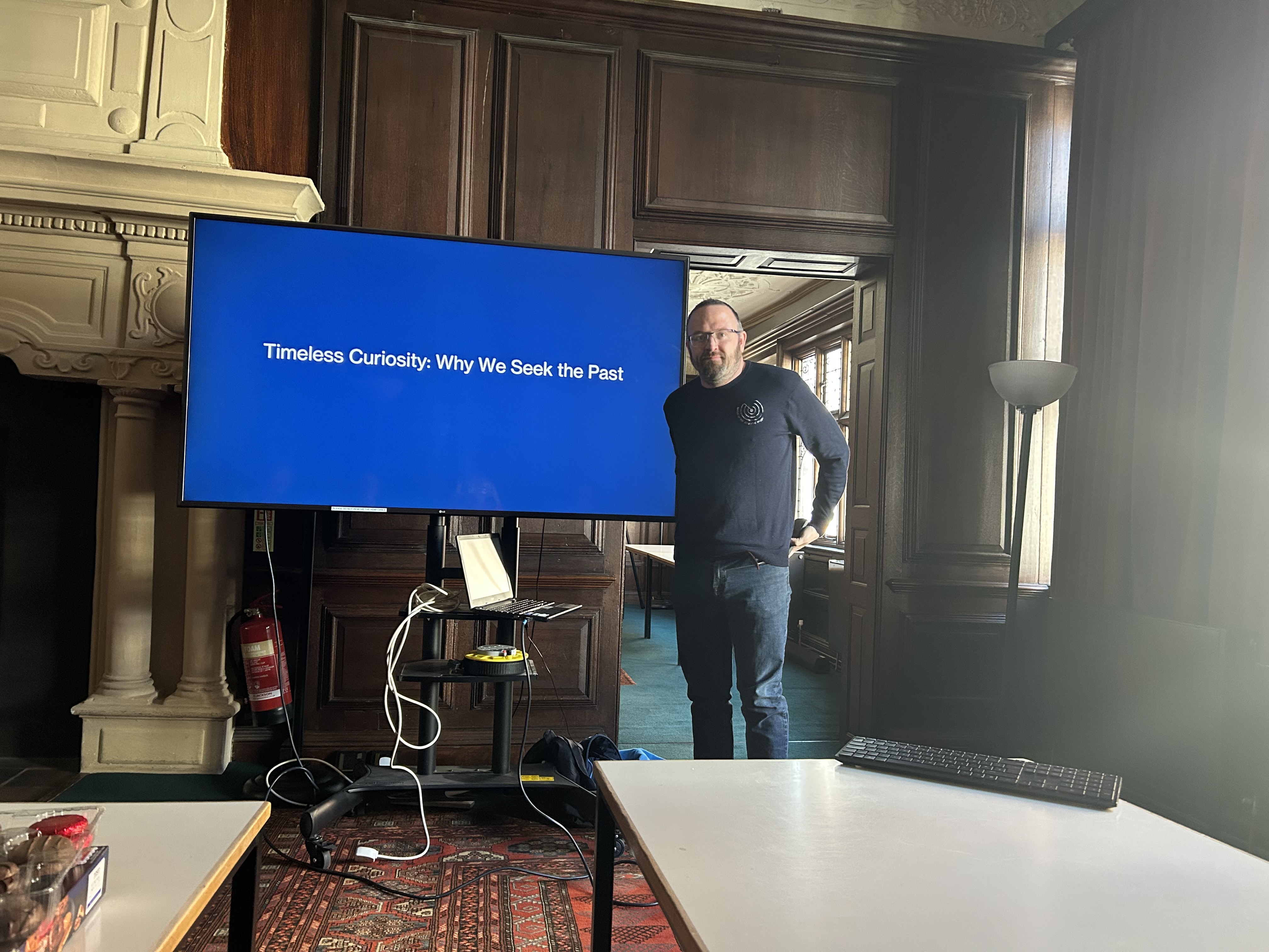 He has his own individual take on history, and he began his talk by explaining what he felt motivates so many people to love history. He cited three reasons: learning, feeling a connection (or lack of one) but in his view the most important that it can be such fun – fun to dress up as a gladiator, fun to try old recipes and sing old songs and fun to feel emotions like nostalgia, creepiness and generally feel a bit weird.