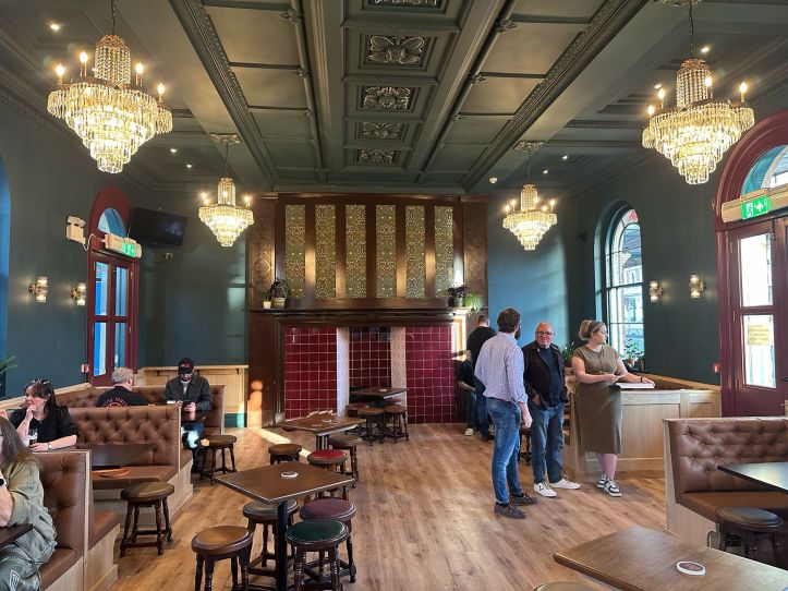Bar manager Ian explained that a huge amount of work has taken place to transform the space, with the process having been two years in the planning. During renovation a false plaster ceiling was discovered , revealing previously hidden historic features. This led to the plans and design work being altered to accommodate the discovery. A successful crowdfunding appeal raised over £50,000 to help fund the restoration. ” It had a tiny plateau in the middle, there was a bit of fear for a short moment. In the final week, the people of Chester, and the country pulled through and we smashed it!” says Chloe.