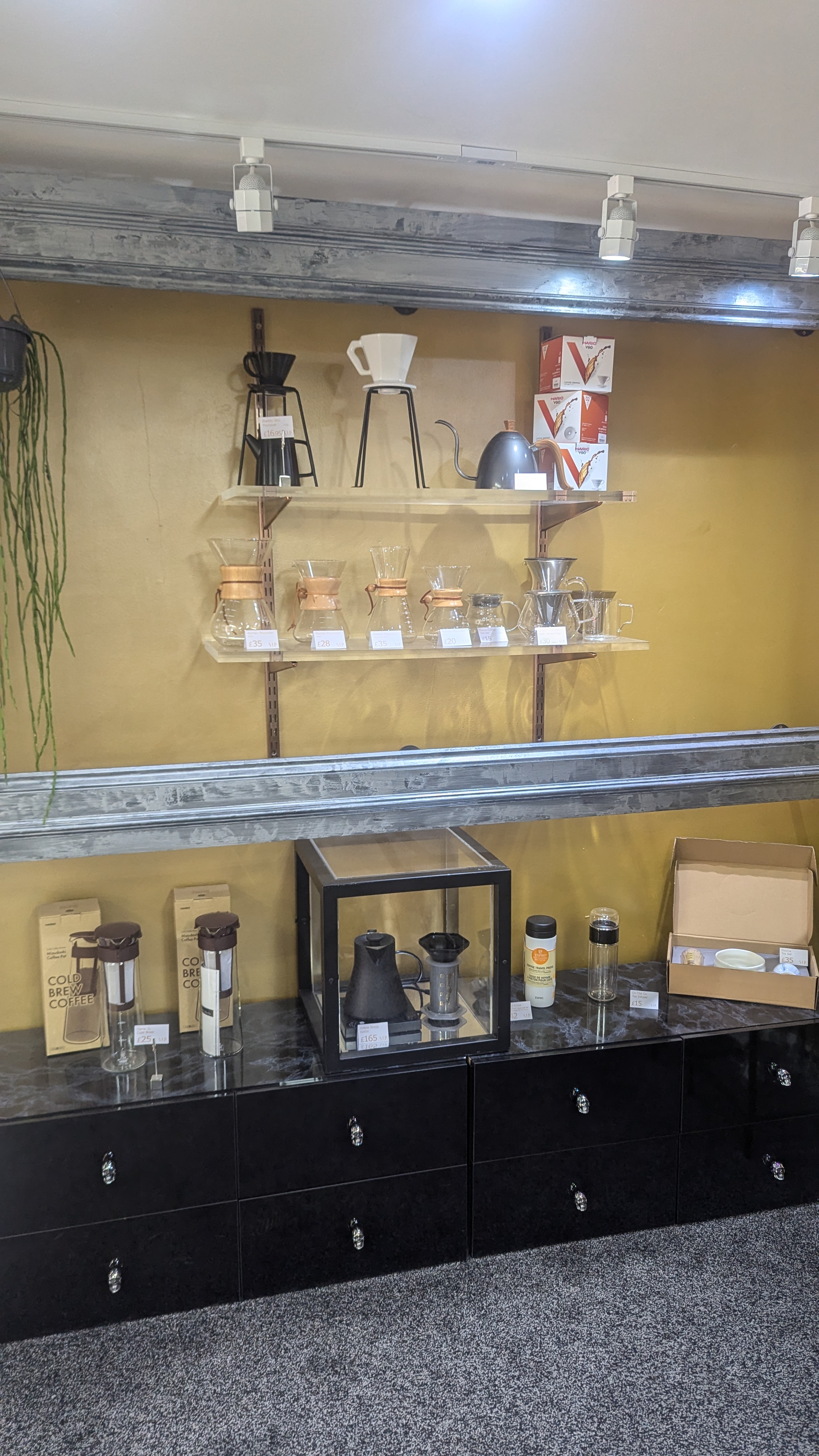 Visitors can browse the displays: “Whether they have £5 for a pour over, or 20 quid for an Aeropress, or they want to buy a Sage machine. “ SIP includes a refurbished marble topped ex Tesco coffee bar, and goods displayed in Harrods safes, that all add to a quirky browsing experience. “”People don’t seem to want to make the effort with retail anymore so I wanted a place where somebody would be happy to be in here. “