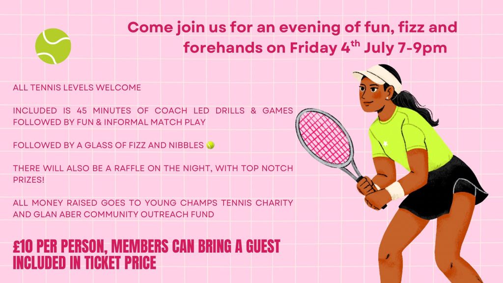 Tickets are available for £10 per person, with all money raised going to the national charity Young Champs UK, whose mission is to make tennis as accessible as possible to all young players and Glan Aber’s local Community Outreach Fund. Mark Chappell, President of Glan Aber Tennis Club comments: ‘We’re excited to host an event for everyone to come down and discover what our club is all about. Wimbledon is the most iconic fortnight in the British tennis season, so what better time to get new faces to come and find out more about Glan Aber. We will be opening up the courts to welcome players of all levels to the club for an evening of fun, forehands and social tennis. We pride ourselves on being one of the friendliest clubs in the region and are excited to welcome potential new members.’