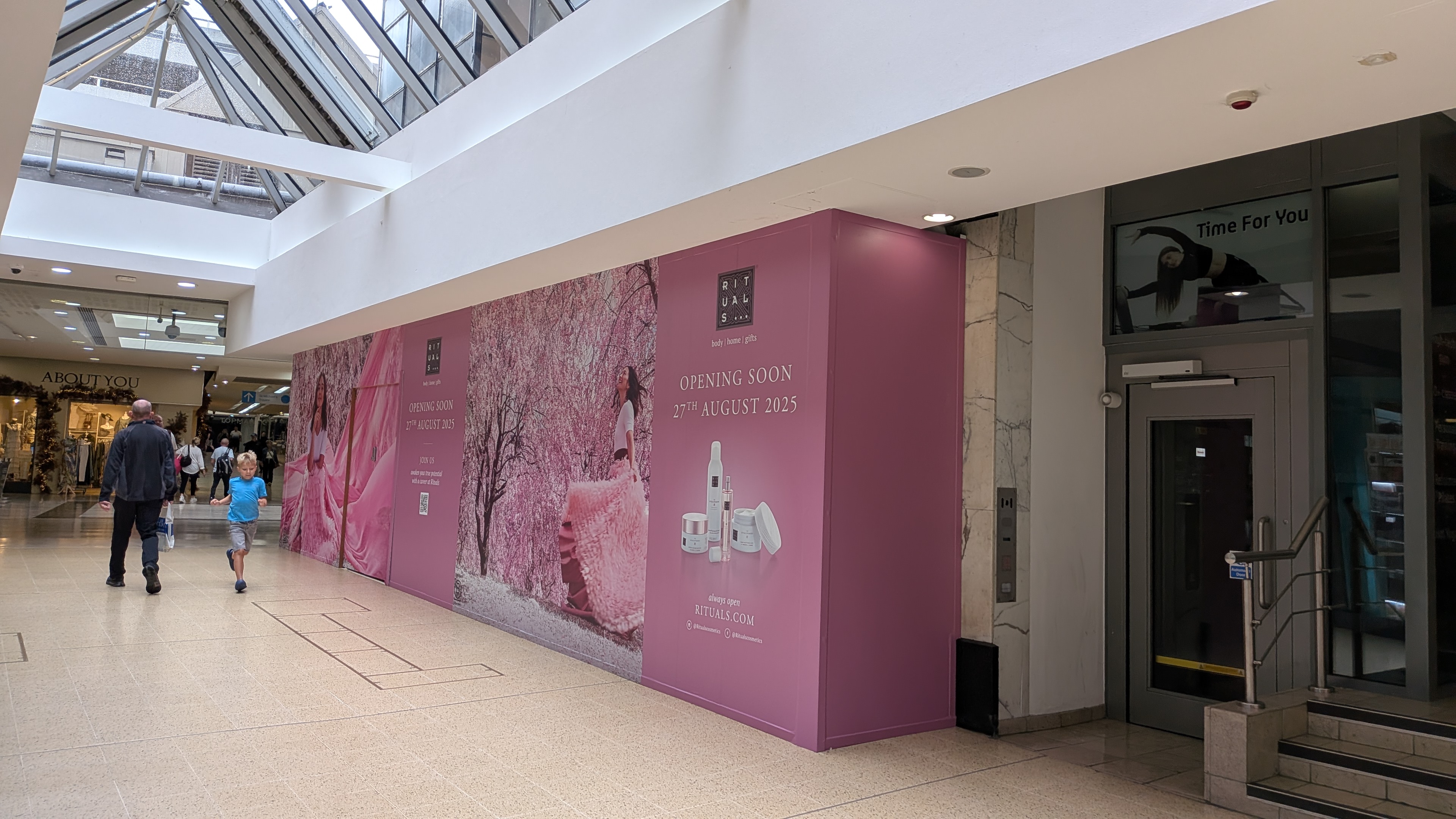 Luxury home and body products retailer Rituals have been confirmed as the latest new retailer coming to Chester . Hoarding is now up on the unit next to the recently opened Utility and opposite the Three store advertising the latest arrival to the centre, which has also seen the recent addition of Trespass. The store will be opening on the 27th August