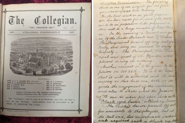 Going back to the days when the University was the Chester Diocesan Training College in the Victorian era, its students produced a magazine called The Collegian, which first appeared in 1886. The 1886 and 1887 issues were long considered to be lost, until bookseller Dr Chris Robinson, of Creaking Shelves Books, came into possession of them. He has kindly donated them to the University archive.