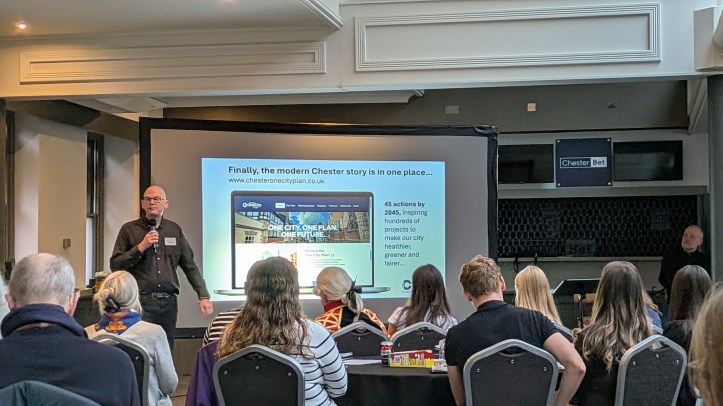 - Cllr Richard Beacham then led a session focused on the One City Plan, a summary of the goals and plans for Modern Chester in one place. https://www.chesteronecityplan.co.uk/. He spoke about then big developments in recent years, which not everyone agrees with as well as the changes below the surface. The list of over 50 completed projects are outlined on the One City plan website. He noted the change in perception and direction , from bad publicity in the 2000s about the rise of stag and hen parties, and the strip club on the rows, to the recent “most welcoming city” accolade. He said that the Plan was all about groups working together to make things different. He said that the arrival of Harrods and IKEA were evidence of the city’s upward trajectory, also noting the less well known investment into a total refurbishment of the Northgate Arena.