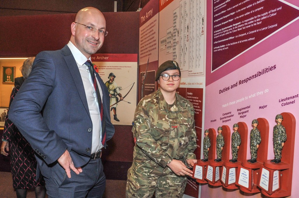 The new exhibition was launched last week at a reception hosted by Col the Right Honourable Bob Stewart DSO, Chairman of the Friends of the Military Museum and former commander of the Cheshire Regiment in Bosnia. The evening was supported by Chester’s Ukraine Community Group, the Mercian Regiment and its Mascot, the Cheshire Army Cadet Force Chester Castle Detachment and Cheshire College’s catering brigade.