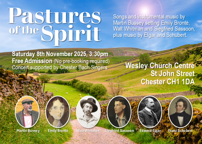 Entitled ‘Pastures of the Spirit’, the concert will take place at the Wesley Church Centre in St John Street Chester at 3.30pm on Saturday 8th November.