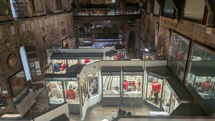 The first port of call is Shrewsbury Castle, home to the Shropshire Regimental Museum. The impressively mounted collection of weapons, uniforms, medals and more traces the involvement of local regiments in conflicts right up to the present day. Facts learned include that , in 1815 at the end of the Napoleonic war, the British army had 234,000 soldiers. The prize exhibit is a lock of Napoleon’s hair, dating from his exile on St Helena where he was guarded by the Shropshire 53rd Regiment. The Napoleonic section is particularly interesting, with the names of battles remembered from TV’s Sharpe or from school. “Think of the atrocities we committed” says a man looking at a display detailing the Indian mutiny. Younger visitors can dress up or try the out the weapon simulator. Exploring the castle grounds provides further excellent views of the surrounding area and the fairy tale like Laura’s Tower (#19 of #120 things to do in Shrewsbury according to TripAdvisor).