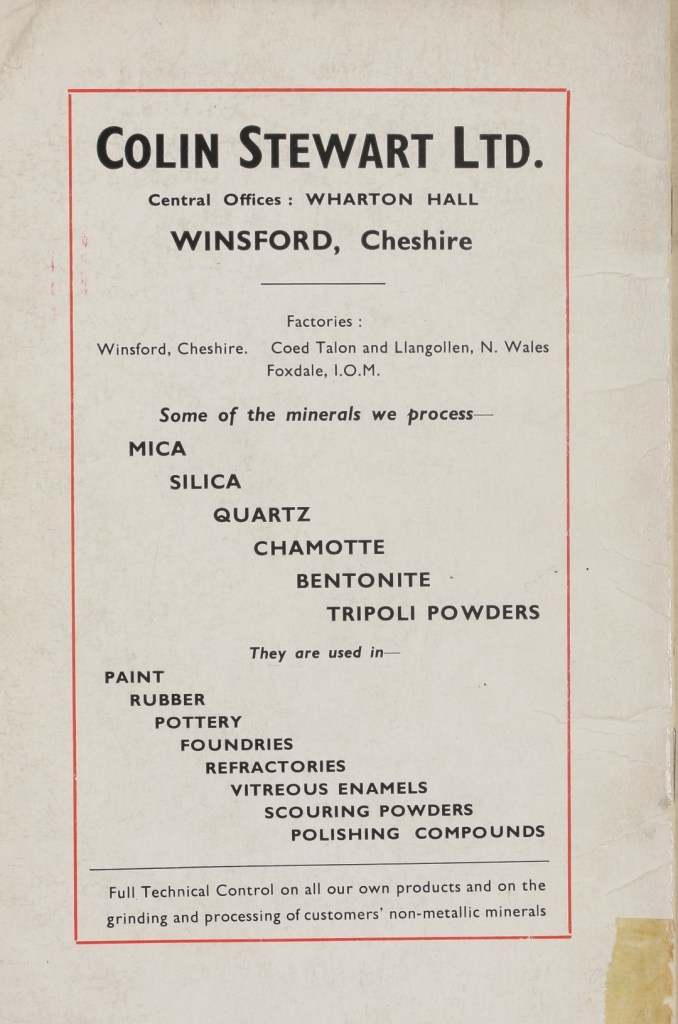 Colin Stewart’s links to Winsford continued through Colin Stewart Ltd, the town’s chemical company that went on to become part of AMCOL International Corporation, a US‑based manufacturer specialising in minerals and chemicals.