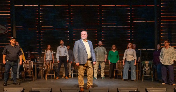 As the chaos of 2001 unfolds, the islanders warmly take the 1000s of passengers into their community, feeding and housing them. Friendships form over 5 days and along the way love begins, and love ends, for some. Moments of quiet sadness contrast with joy, humour and togetherness. Not afraid to tackle darker themes, the prejudice experienced by an Egyptian Muslim, played by Tip Top regular Phil Cross was well illustrated, and given that the musical is set 25 years ago, made me wonder how far , or not so far, we have come.