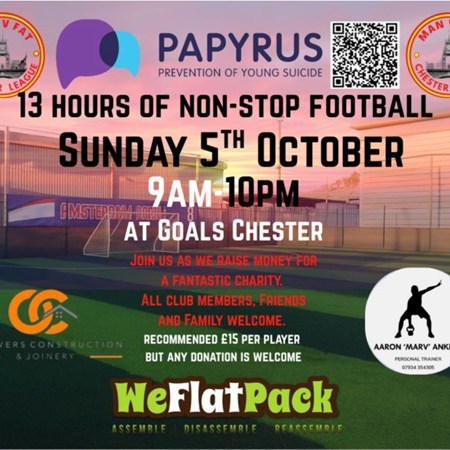 Non stop football event in aid of suicide prevention charity